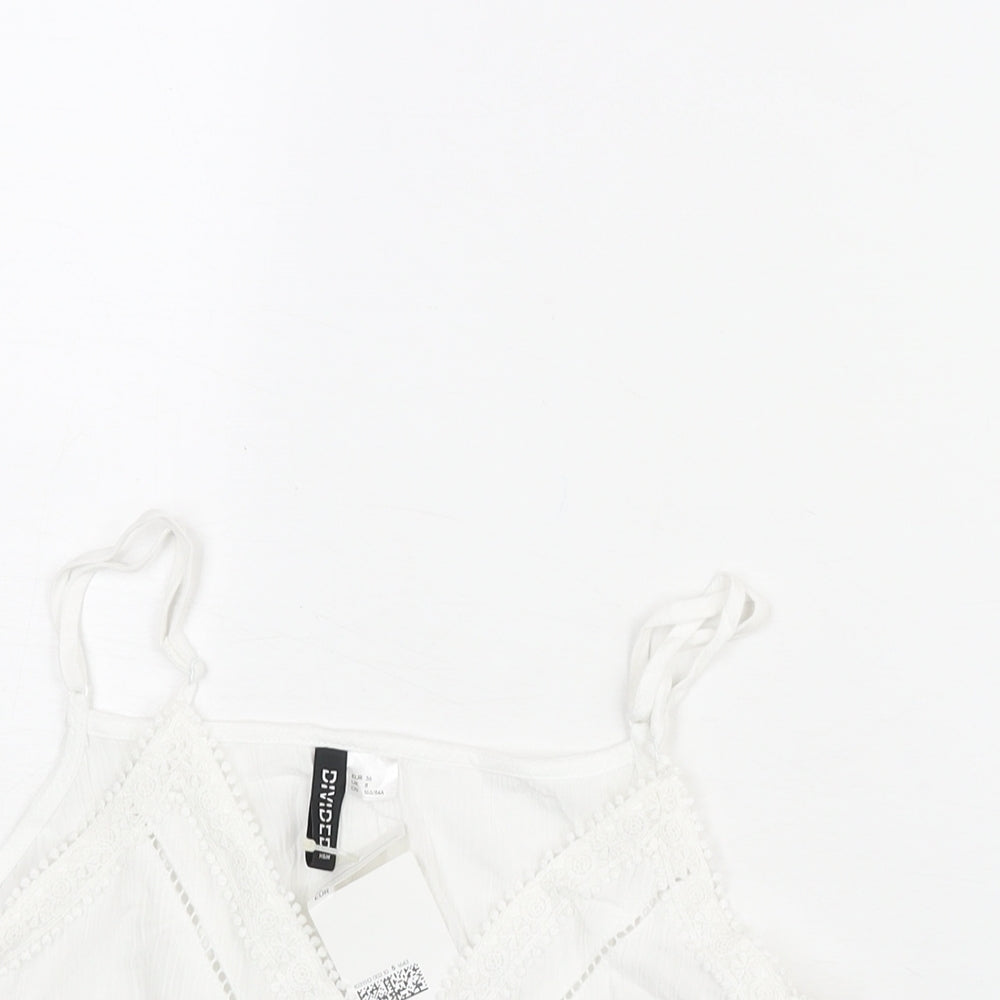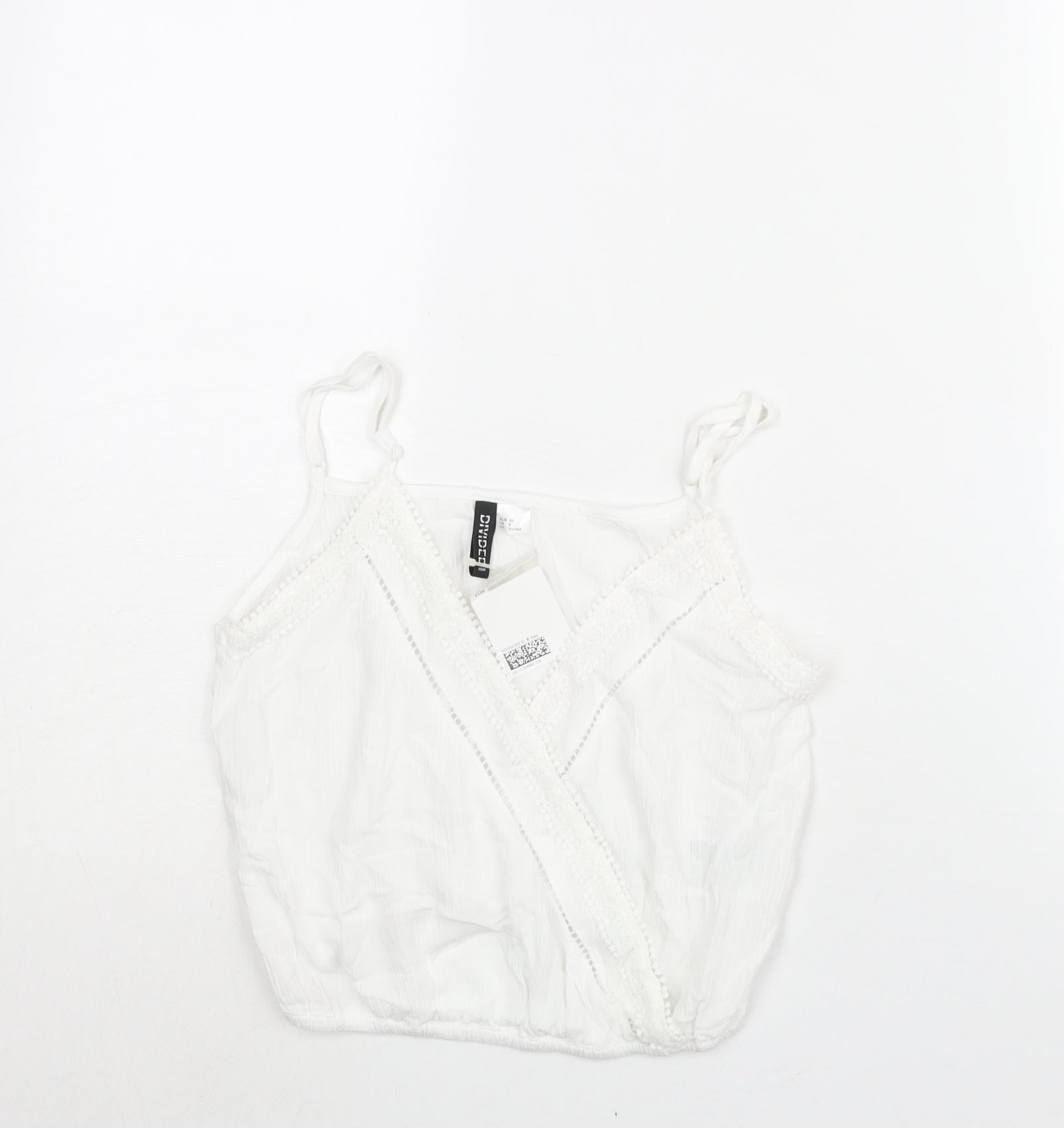 Divided by H&M Womens White Viscose Cropped Blouse Size 8 V-Neck - Lace Trim