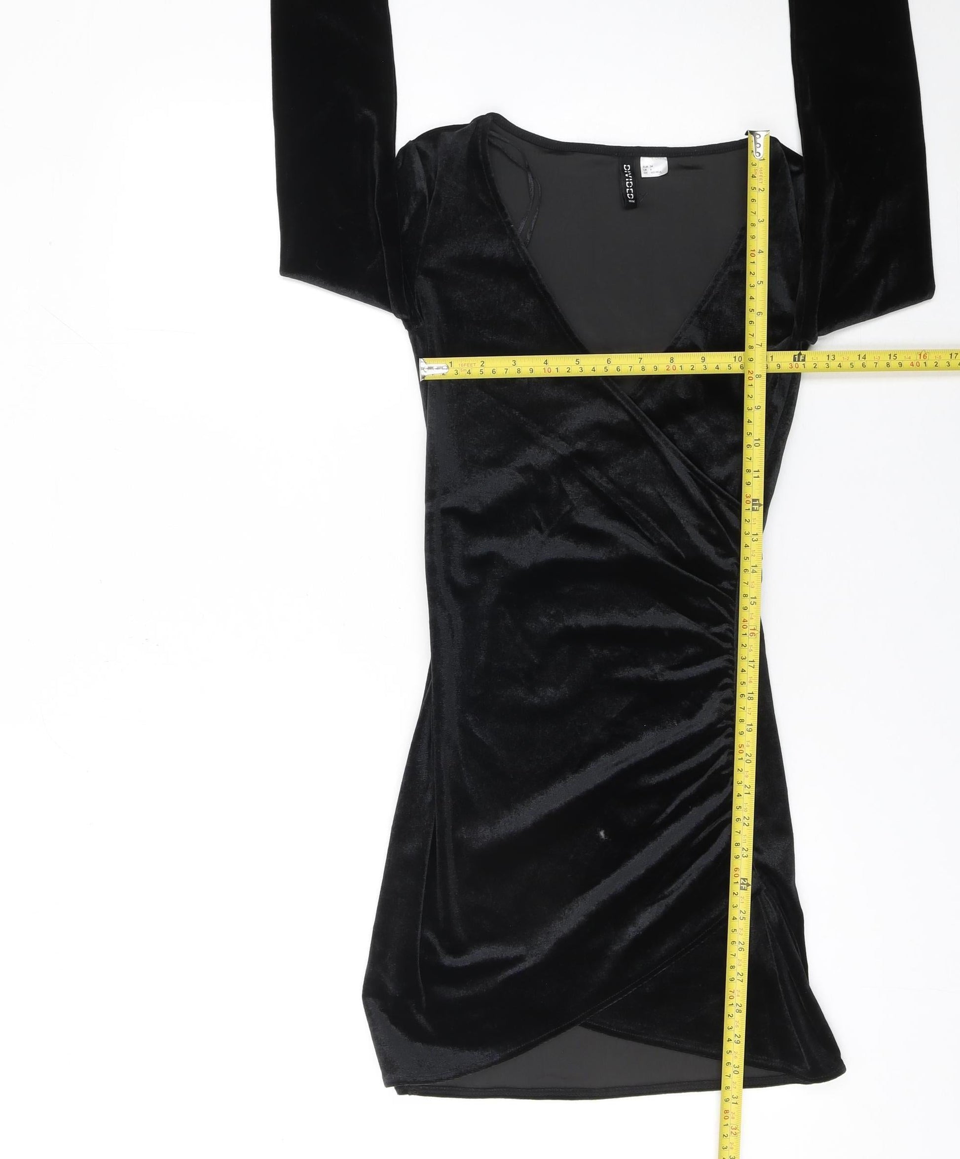 DIVIDED Women’s Black Velvet Long Sleeve Wrap Mini Dress Size 6