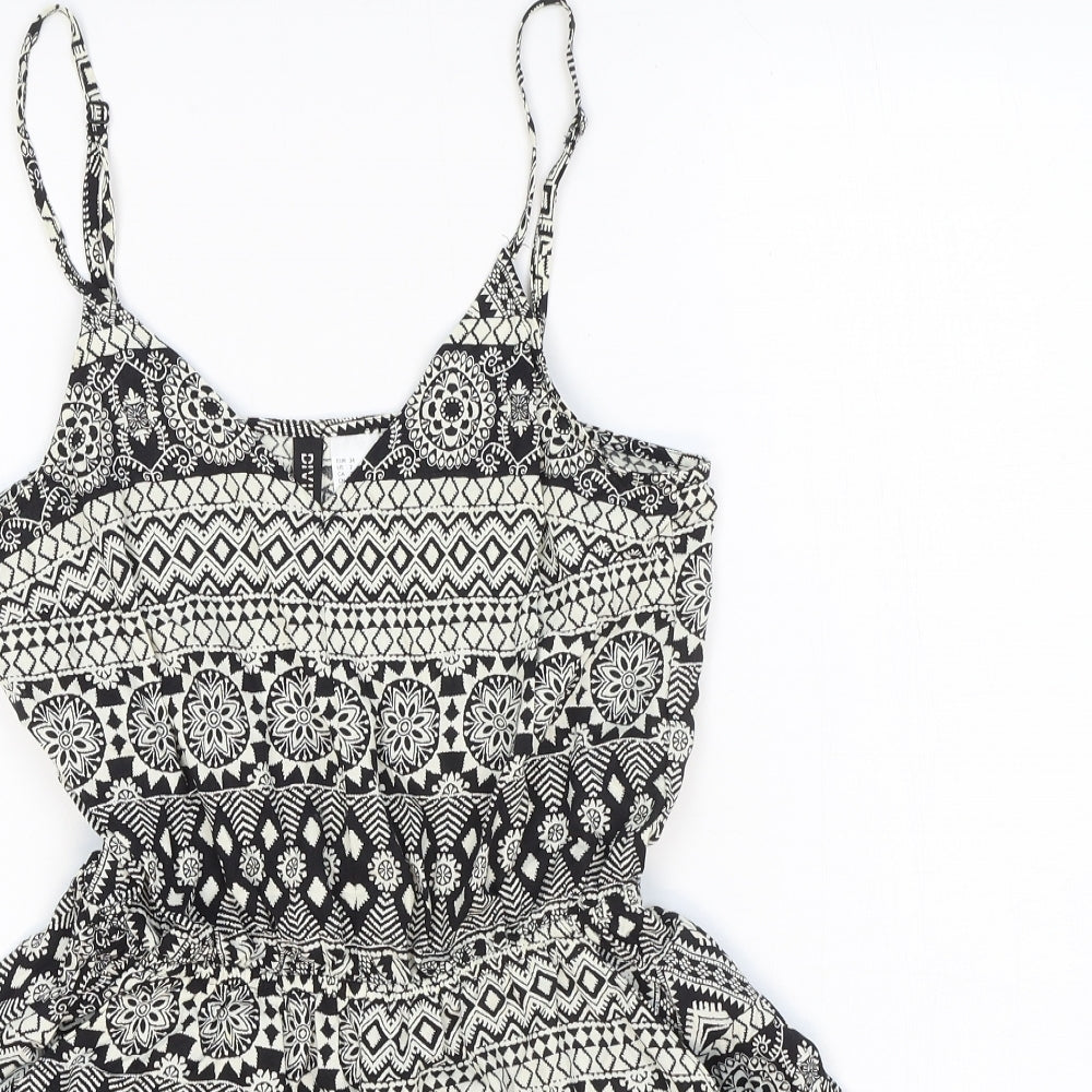 Divided Womens Black Geometric 100% Cotton Playsuit One-Piece Size 6 Pullover