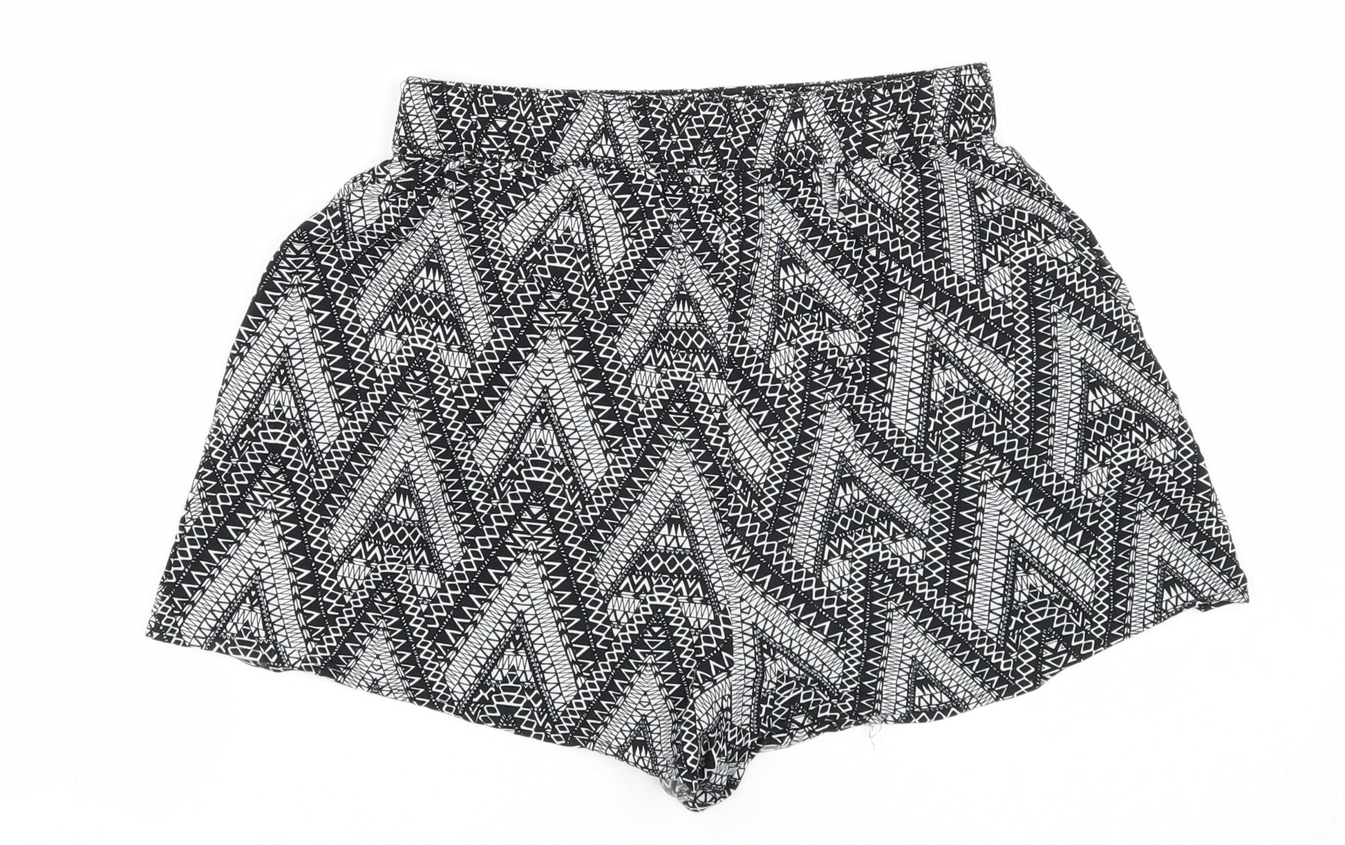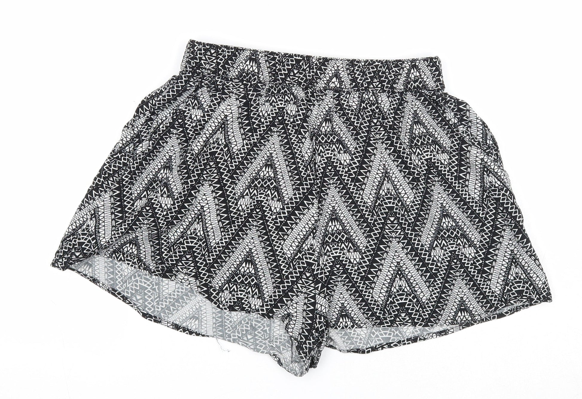 Divided Womens Black Geometric Viscose Basic Shorts Size 6 Regular Pull On - Waist 22 inches