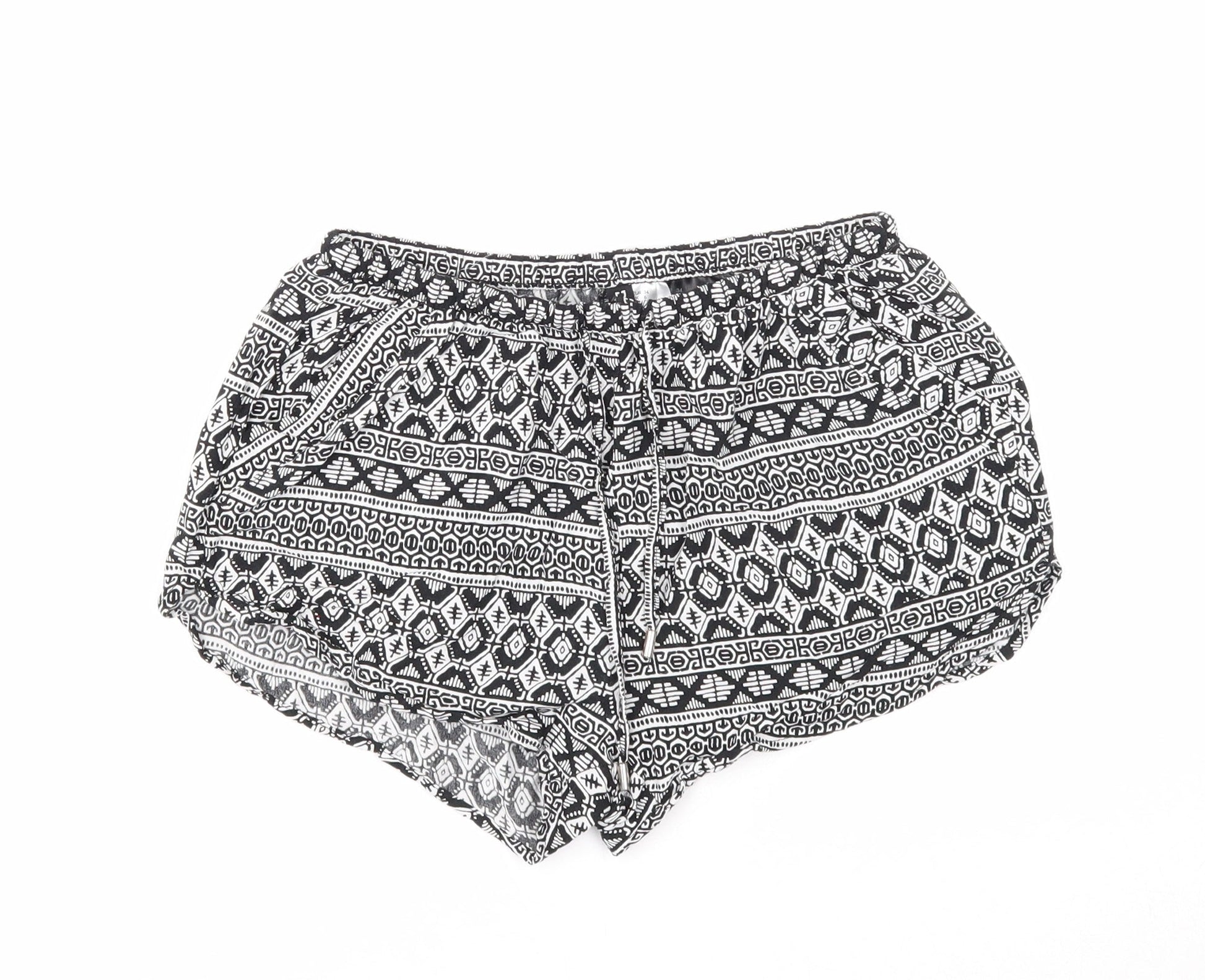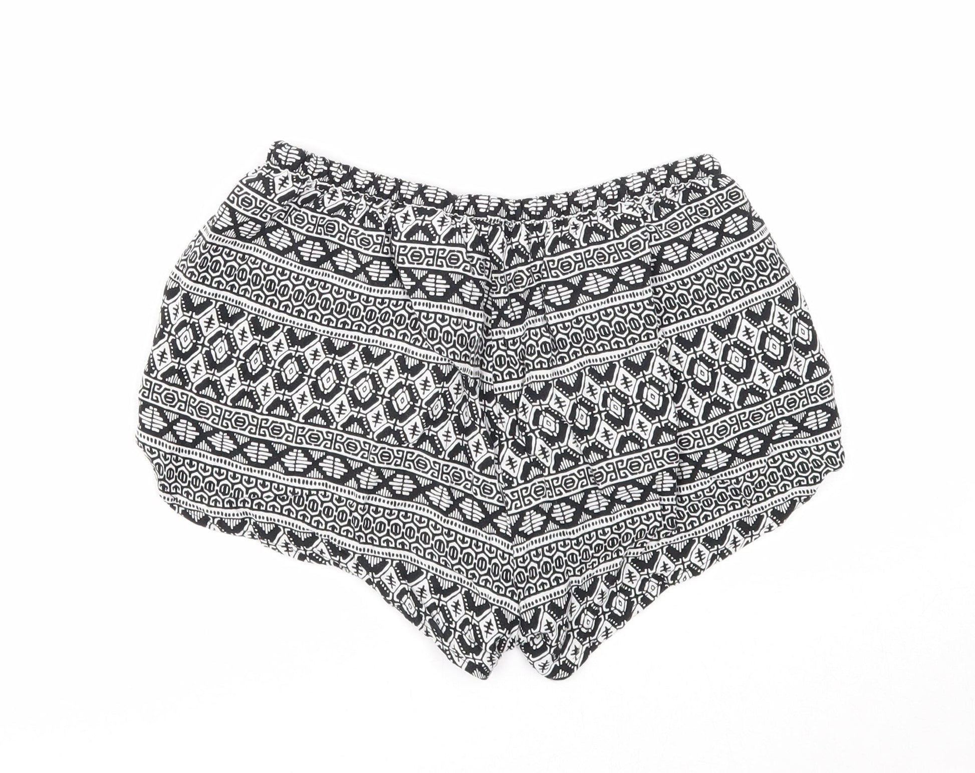 Divided Womens Black Geometric Viscose Skimmer Shorts Size 6 Regular Drawstring