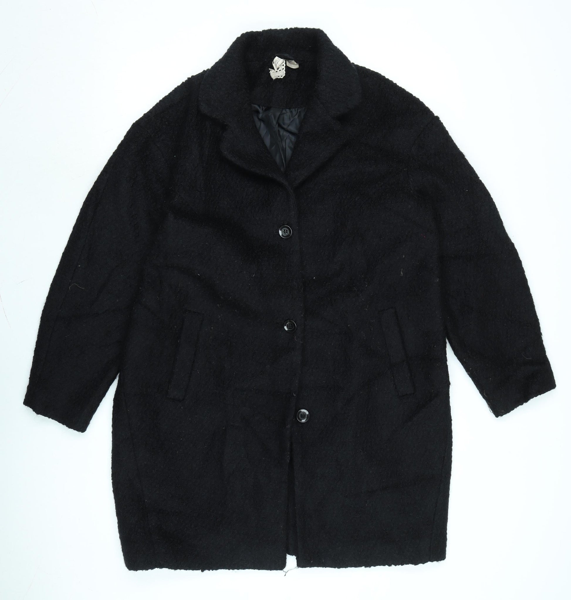 Divided Womens Black Overcoat Coat Size 8 Button