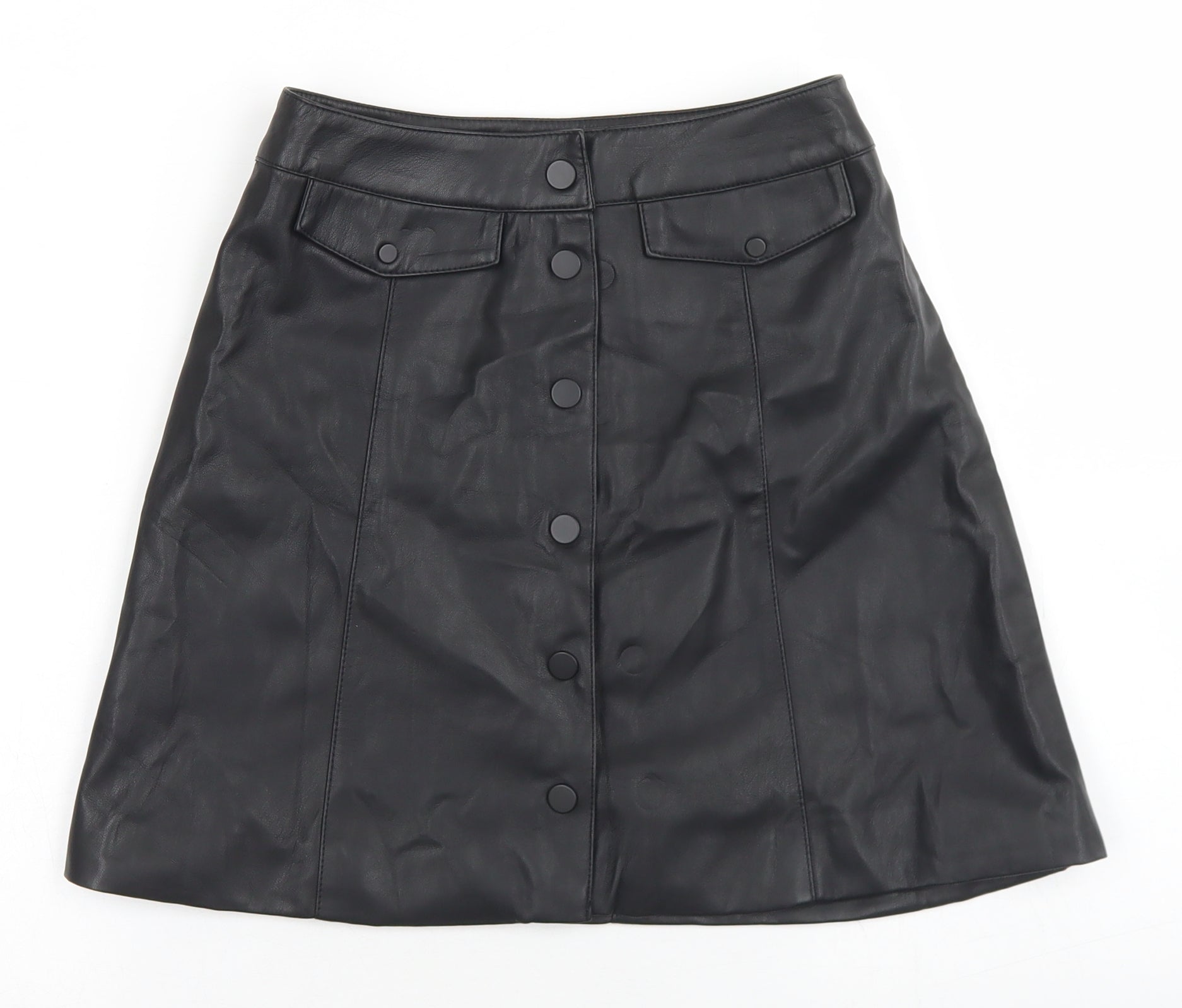 Divided Womens Black Polyester A-Line Skirt Size 4 Snap