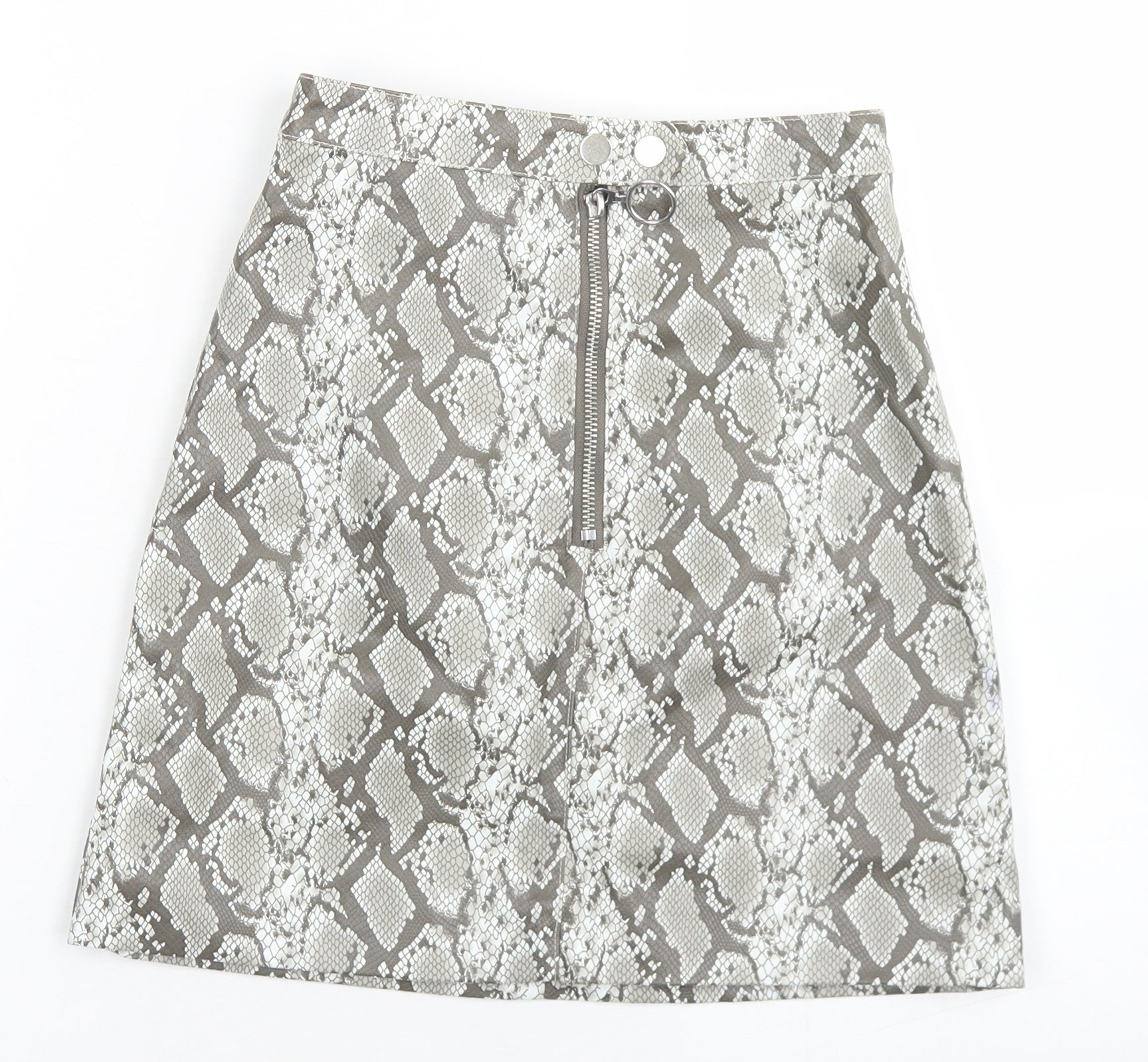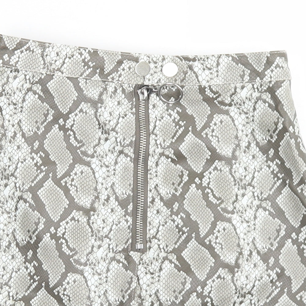 Divided Womens Grey Animal Print Polyester A-Line Skirt Size 4 Zip