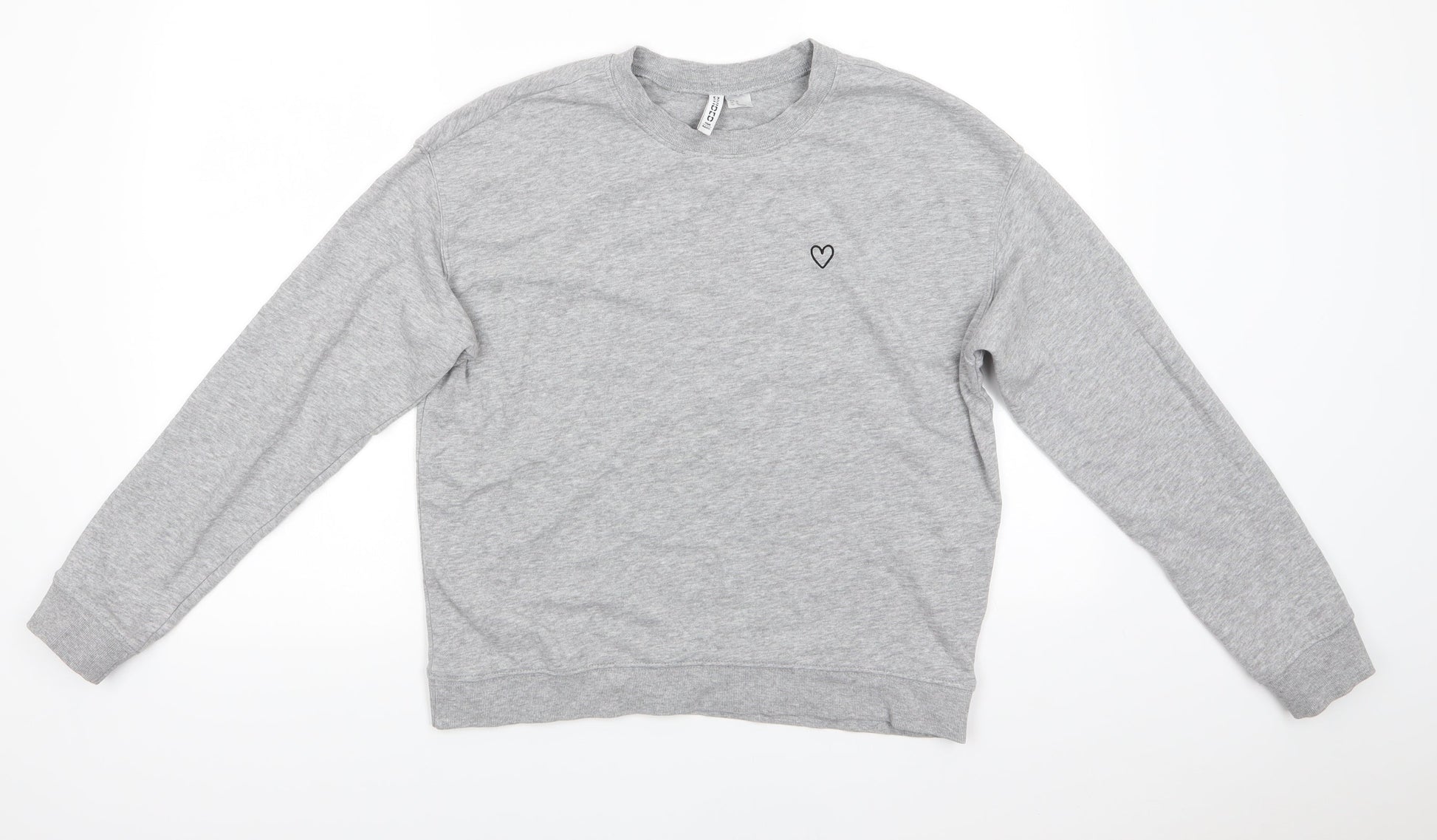 Divided Womens Grey Cotton Pullover Sweatshirt Size M - Mid Grey mix Heart Logo