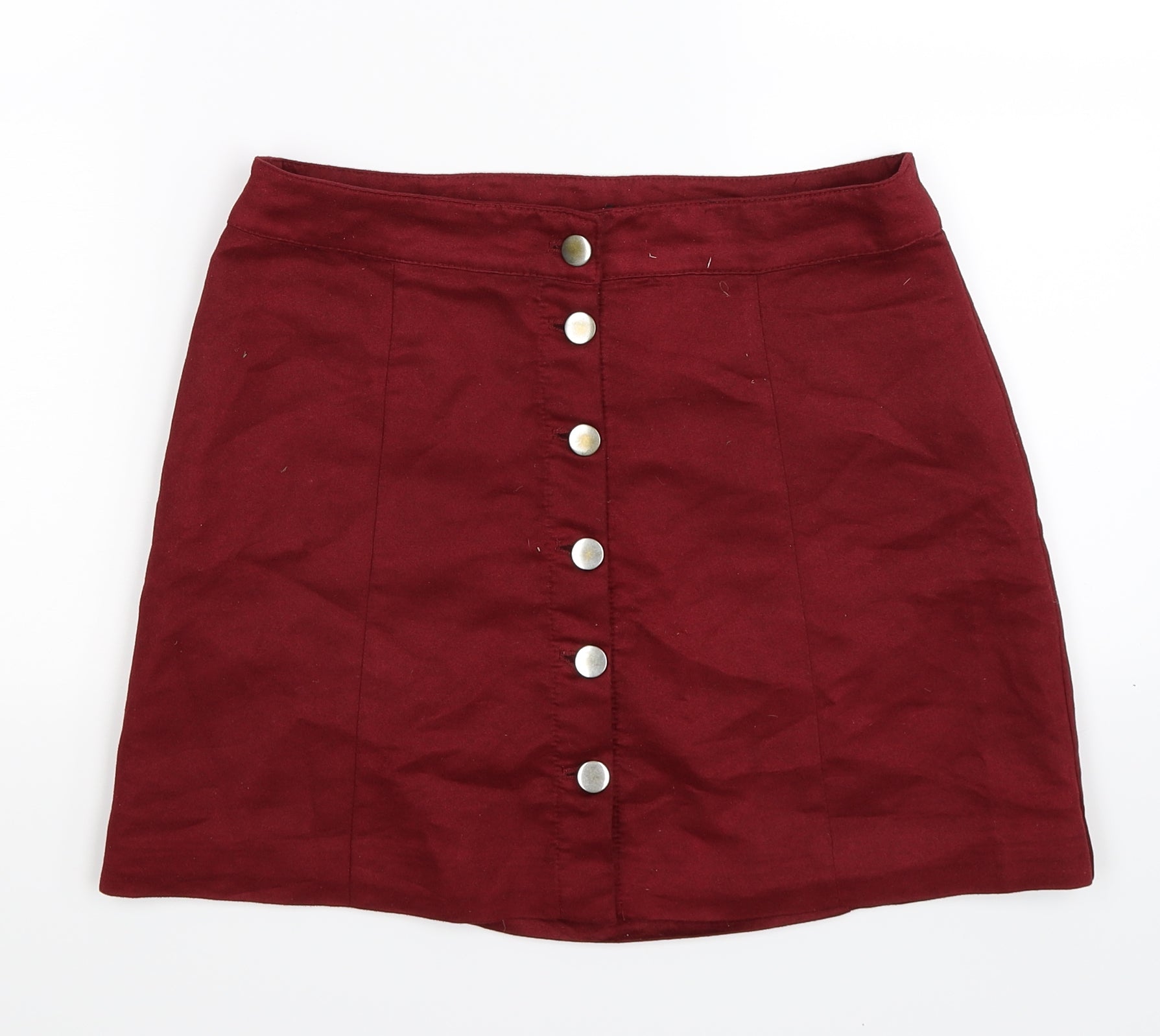 Divided Womens Red Velour Straight & Pencil Skirt Size 10 - FAUX SUEDE