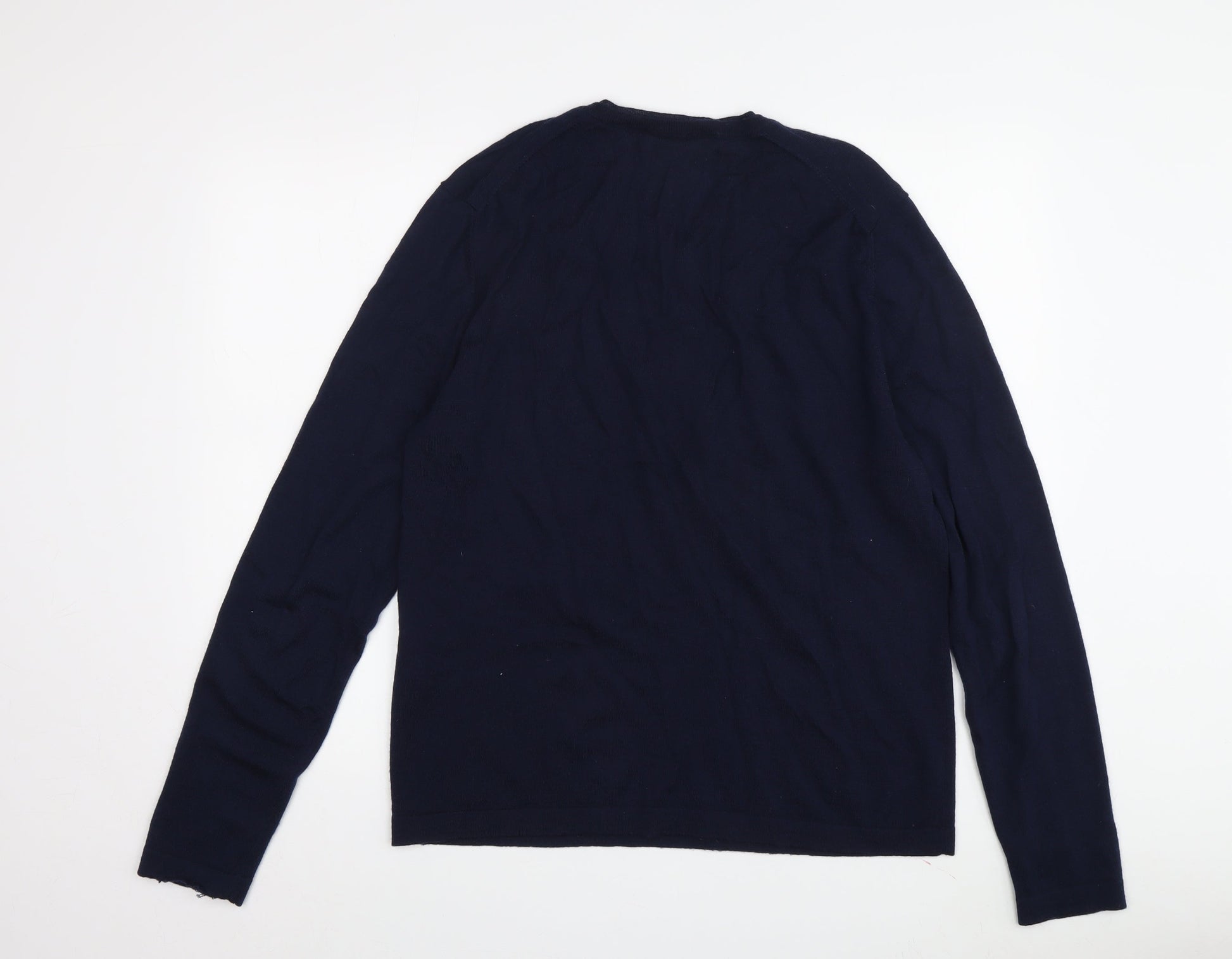 DKNY Men's Blue XL Merino Wool V-Neck Pullover Jumper