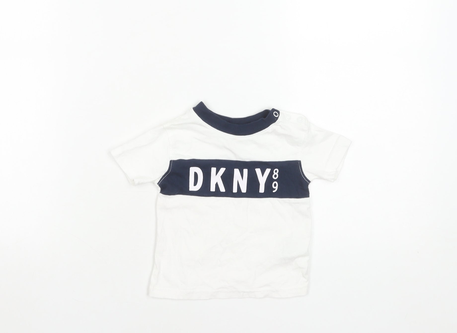 DKNY Unisex Baby White Cotton Logo T-Shirt 12 Months Short Sleeve