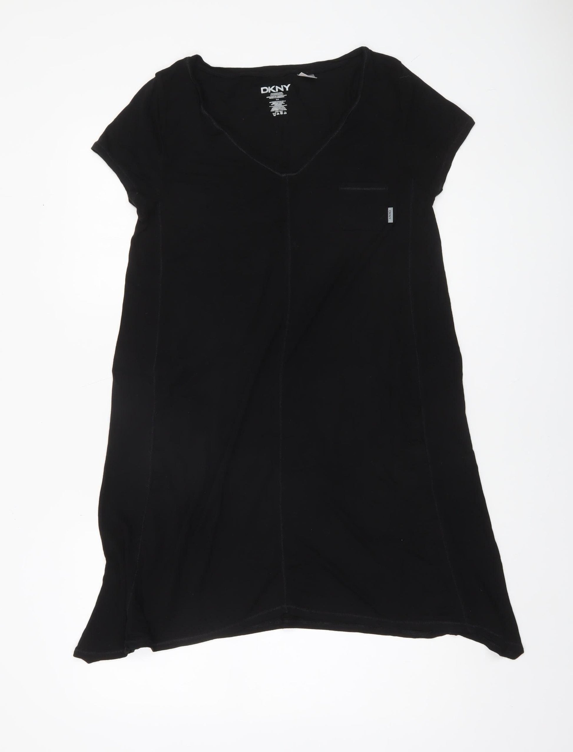 DKNY Women Black M V-Neck Short Sleeve T-Shirt Dress