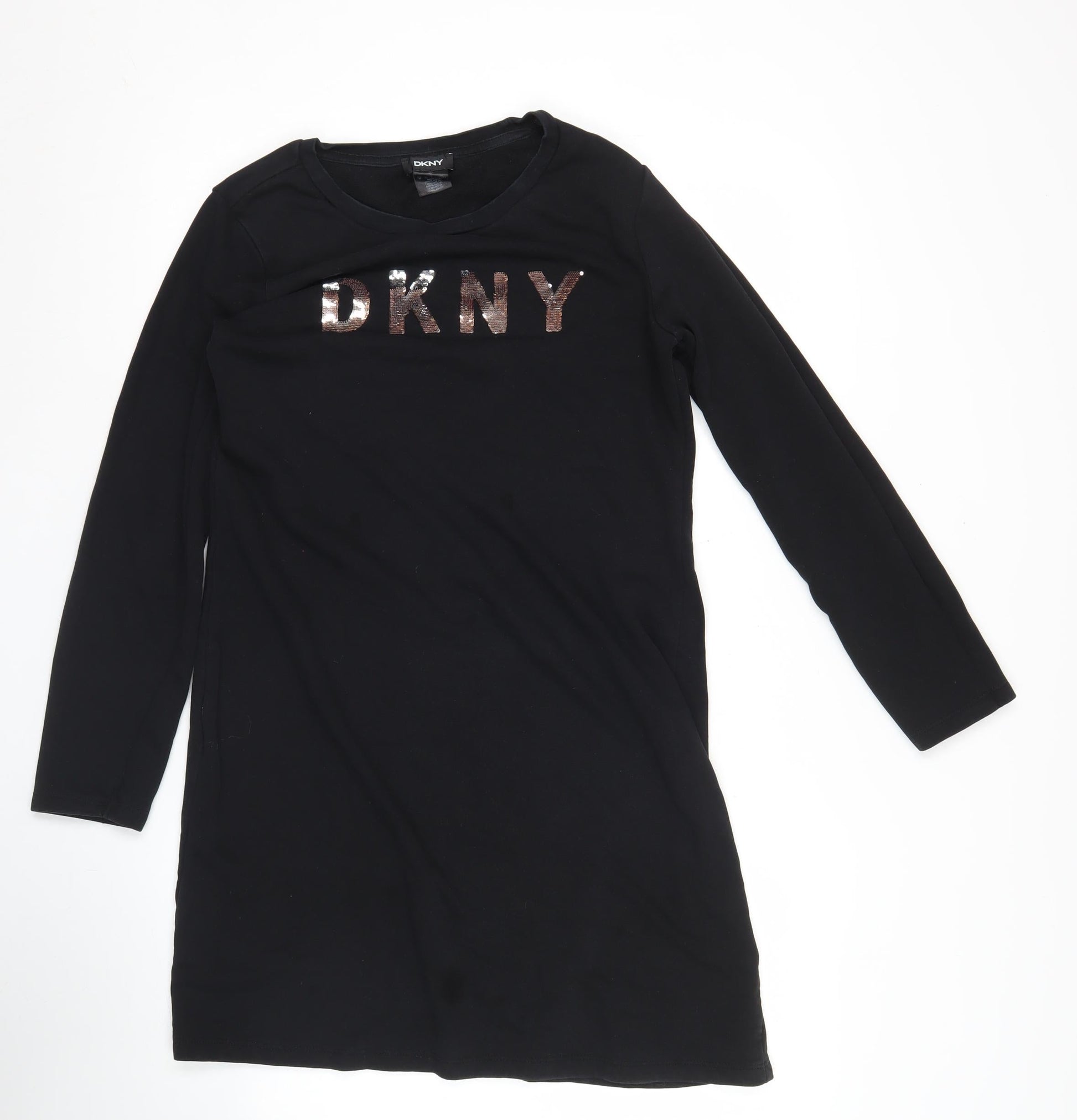 DKNY Women’s Black Sequin Logo T-Shirt Dress Size S