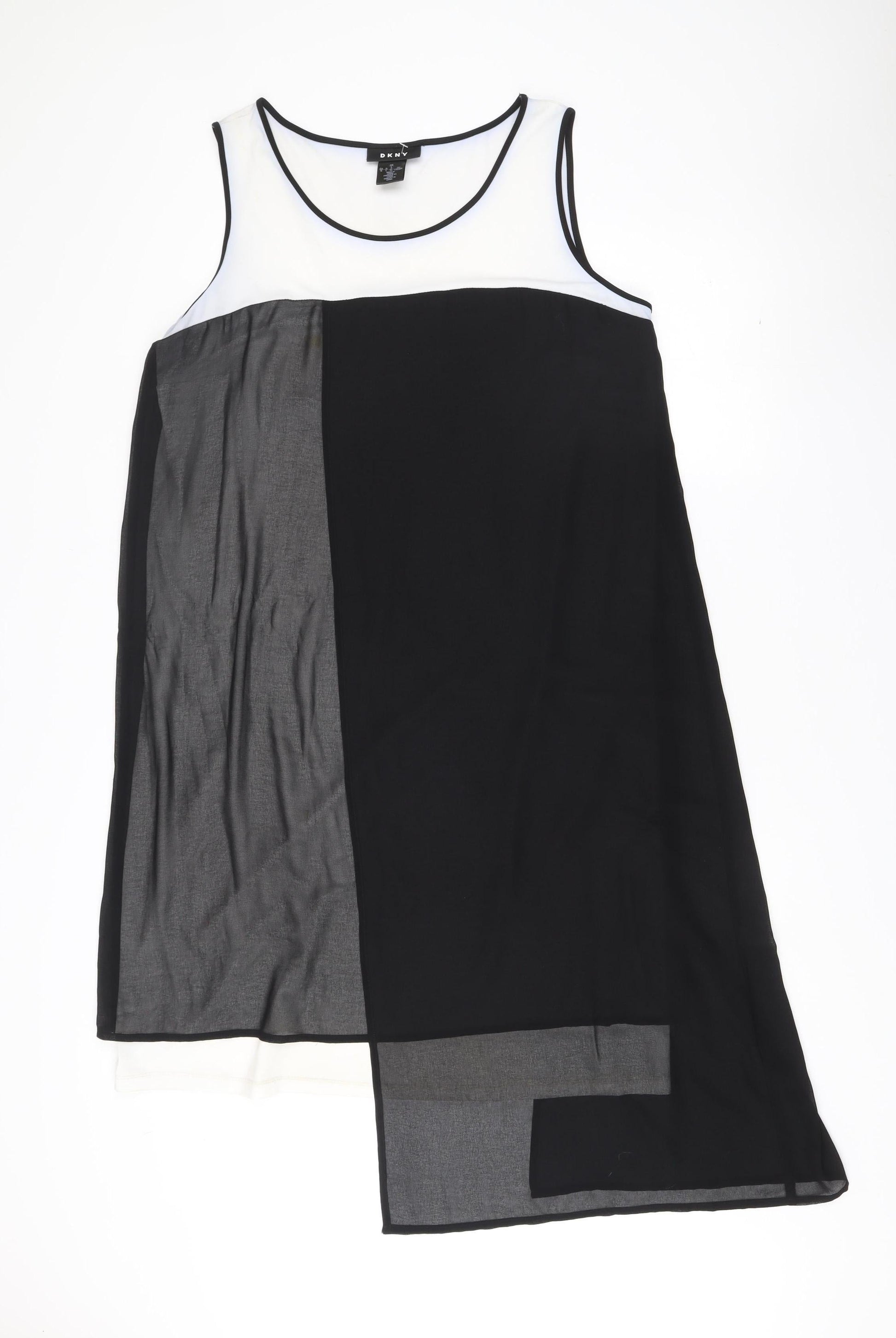 DKNY Women’s Shift Dress Black White Grey Midi Size 14 Colourblock