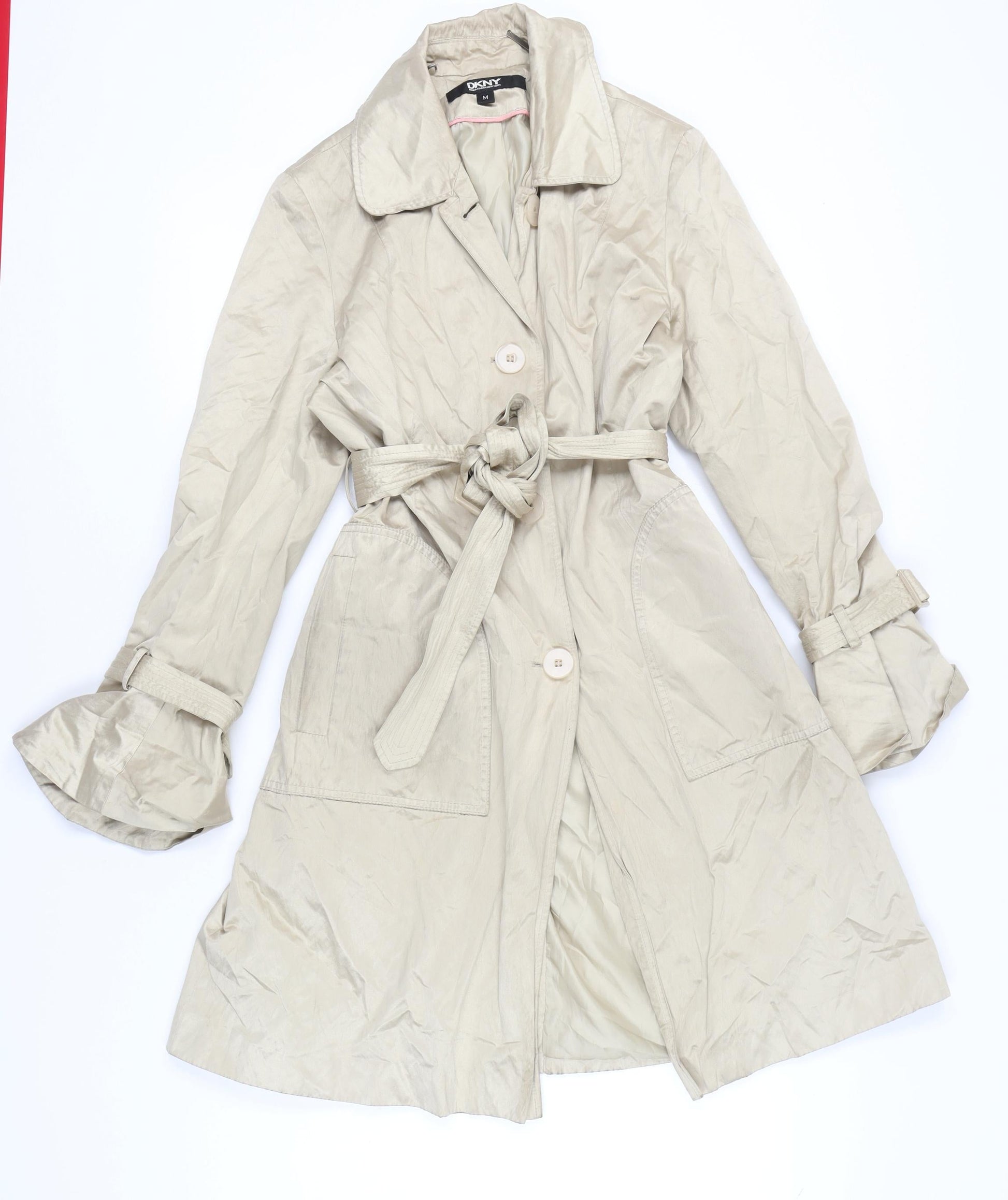 DKNY Womens Beige Trench Coat M Belted Classic Mid-Length