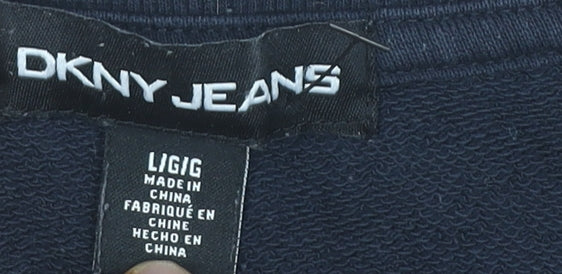 DKNY Womens Black Logo Sequin Pullover Sweatshirt Size L