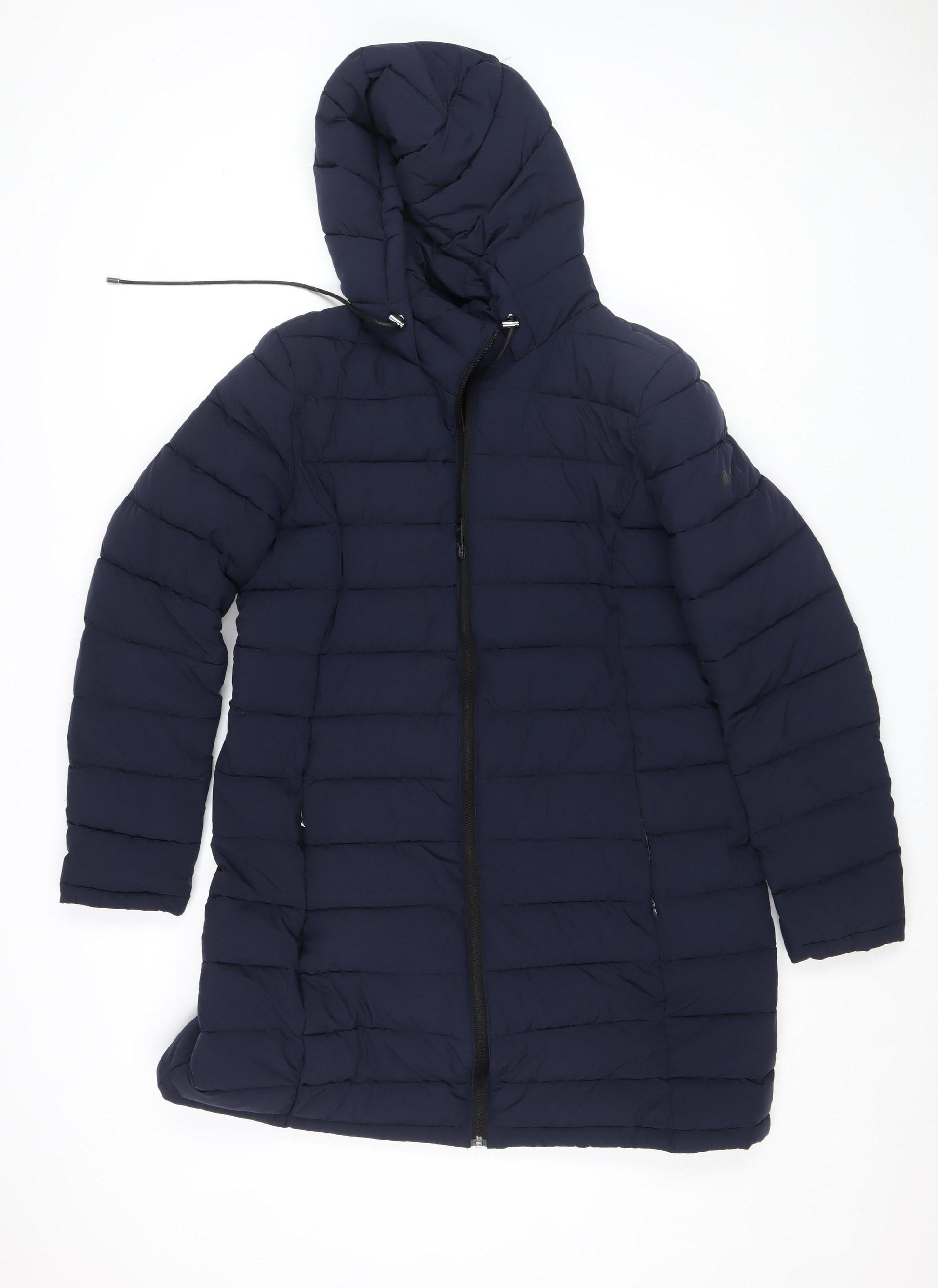 DKNY Womens Blue Long Puffer Coat L Hooded Quilted Winter Jacket