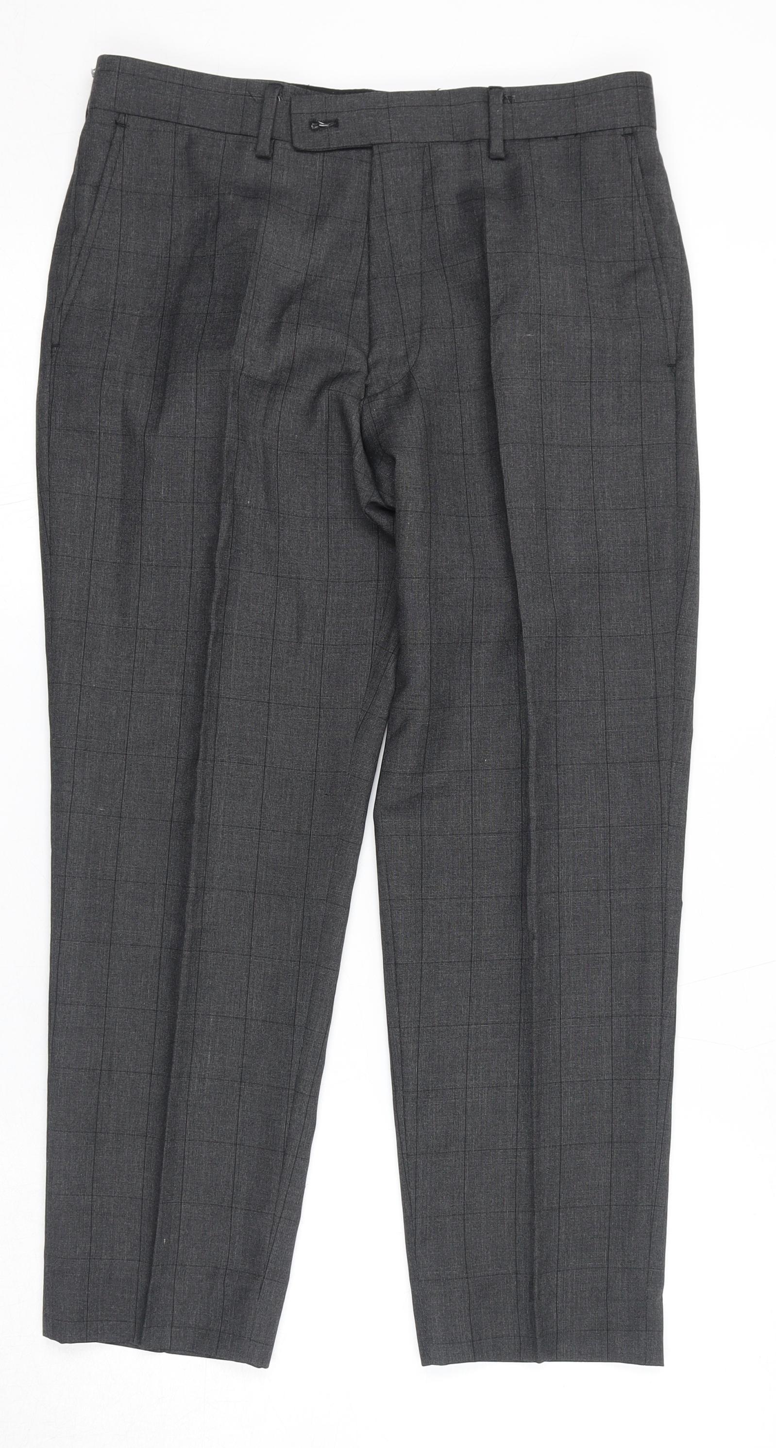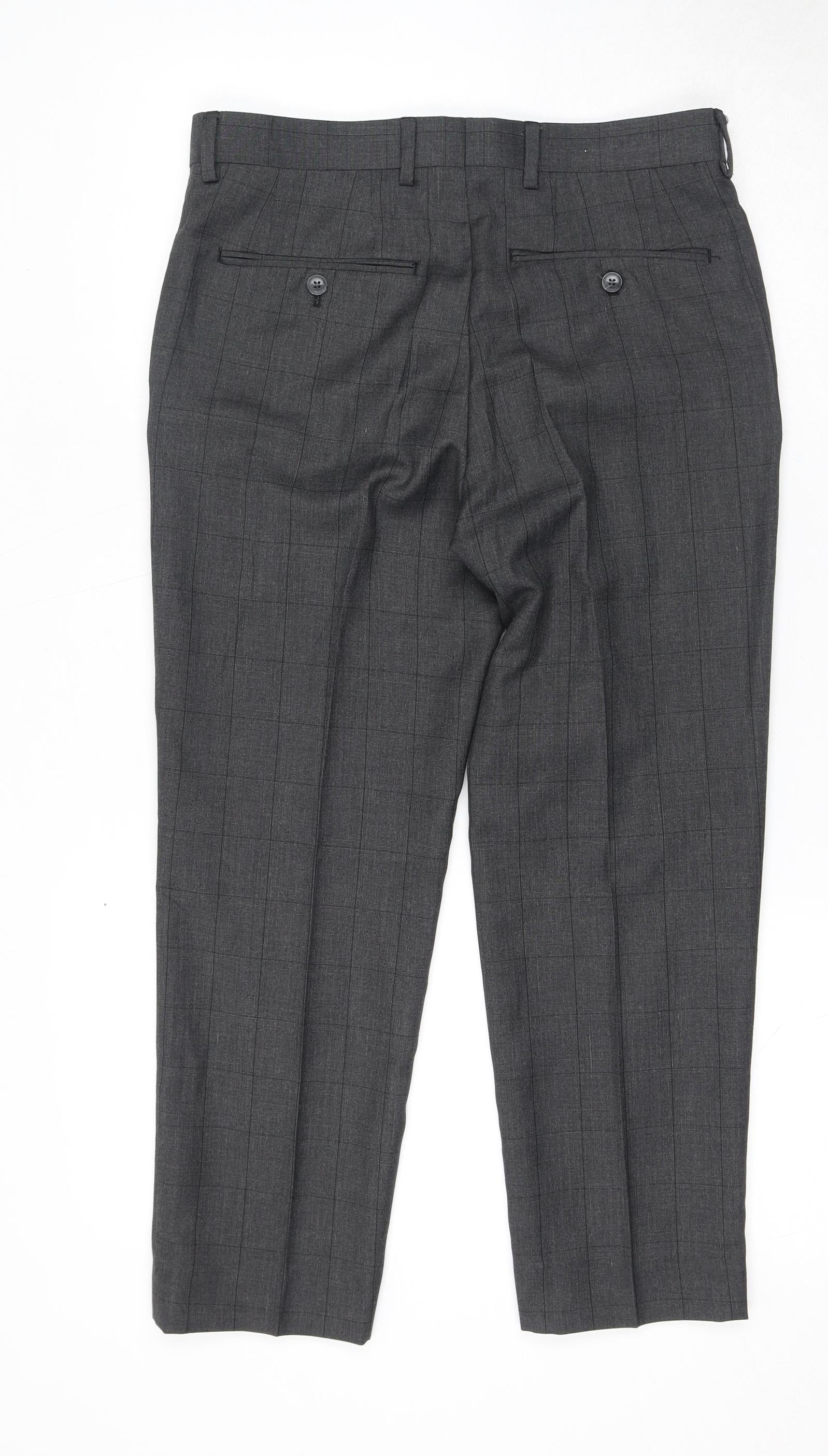 Dobell Mens Grey Check Polyester Dress Pants Trousers Size 30 in L24 in Regular Zip