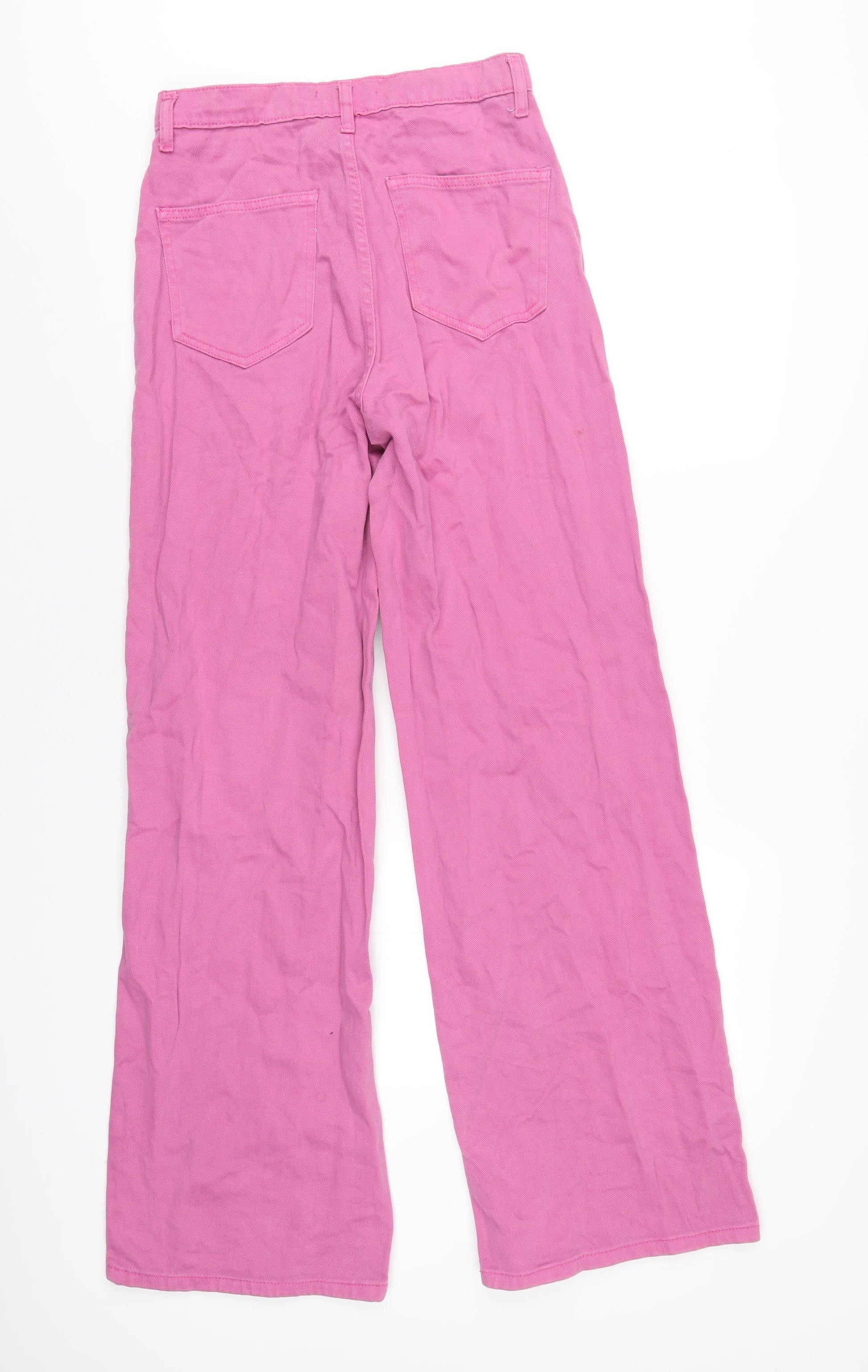 Don't Think Twice Womens Pink Cotton Wide-Leg Jeans Size 12 L34 in Regular Zip
