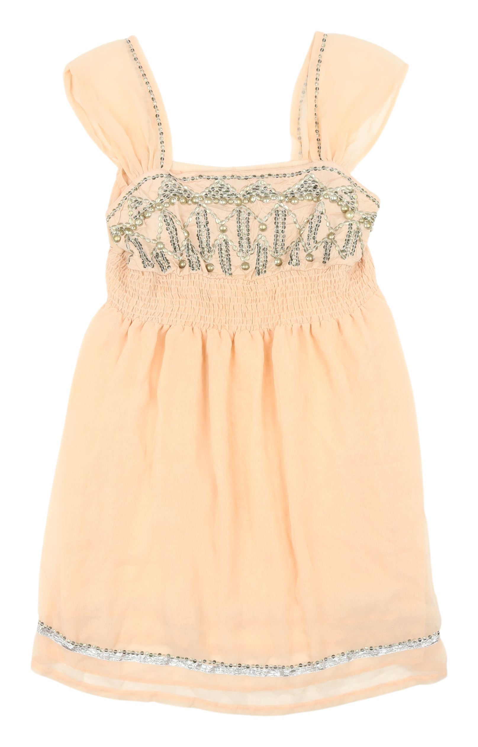 Dorothy Perkins Beige Smocked Beaded A-Line Dress 16