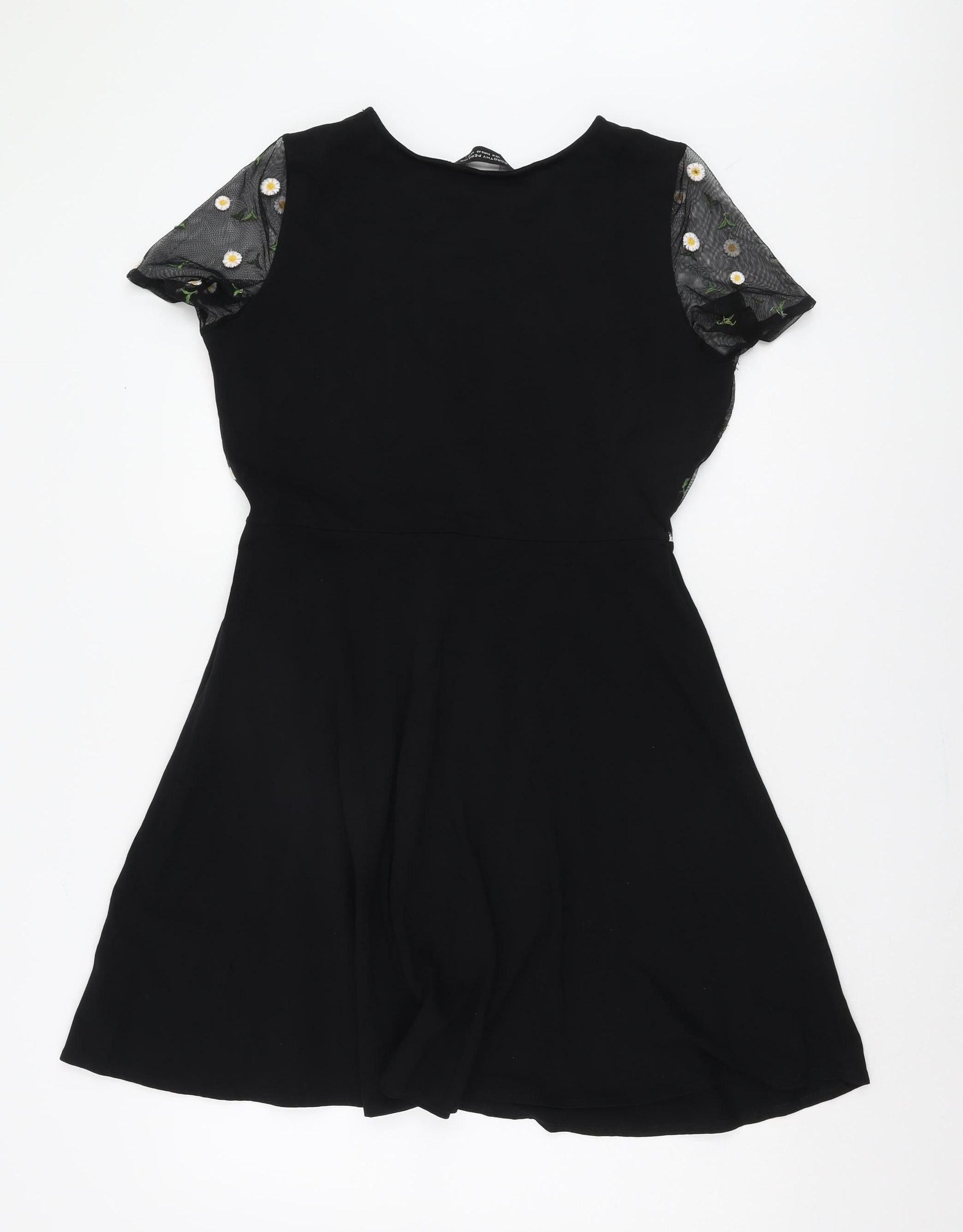 Dorothy Perkins Black A-Line Floral Dress Size 14