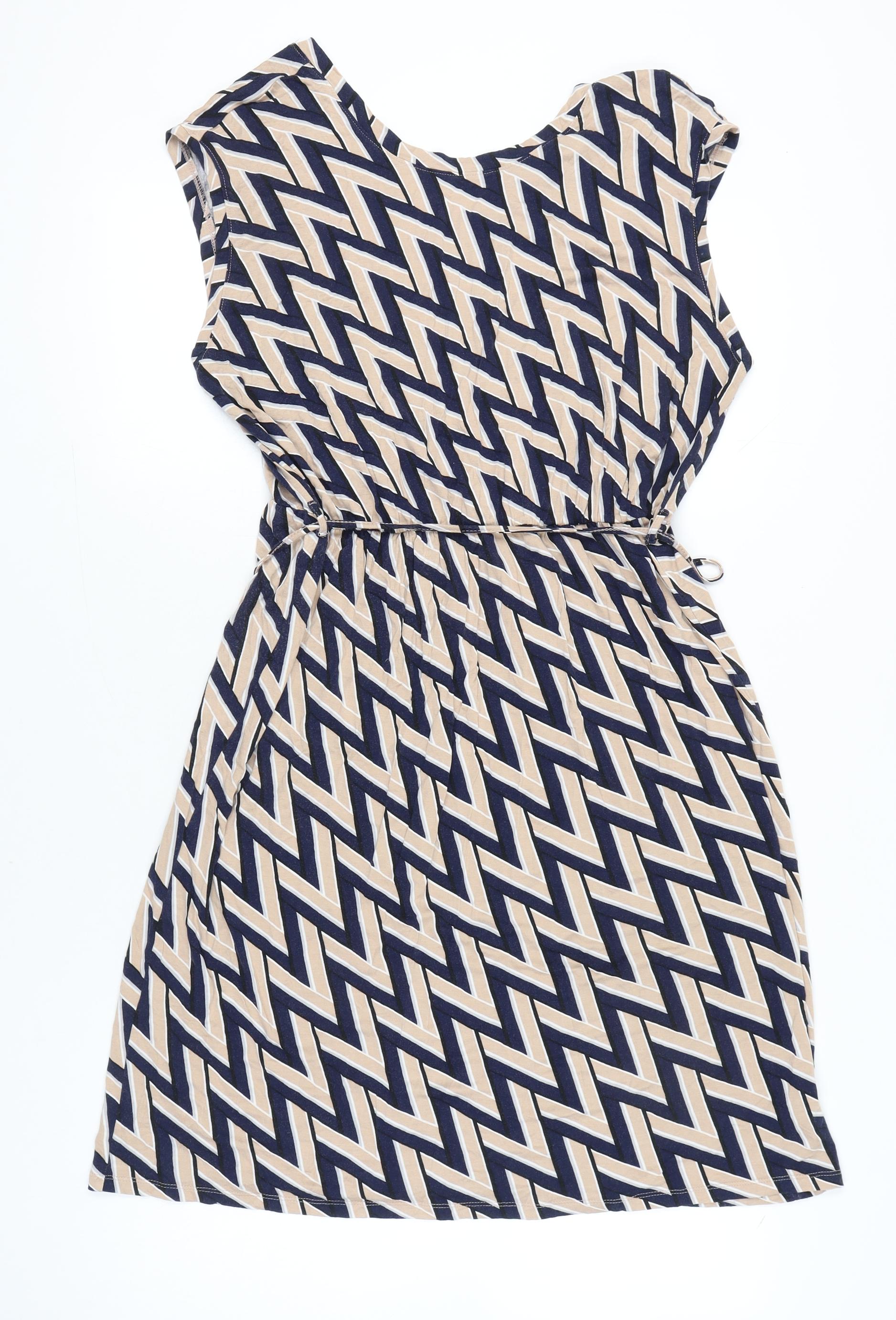 Dorothy Perkins Women’s Beige Black Shift Dress Size 18 Sleeveless Geometric