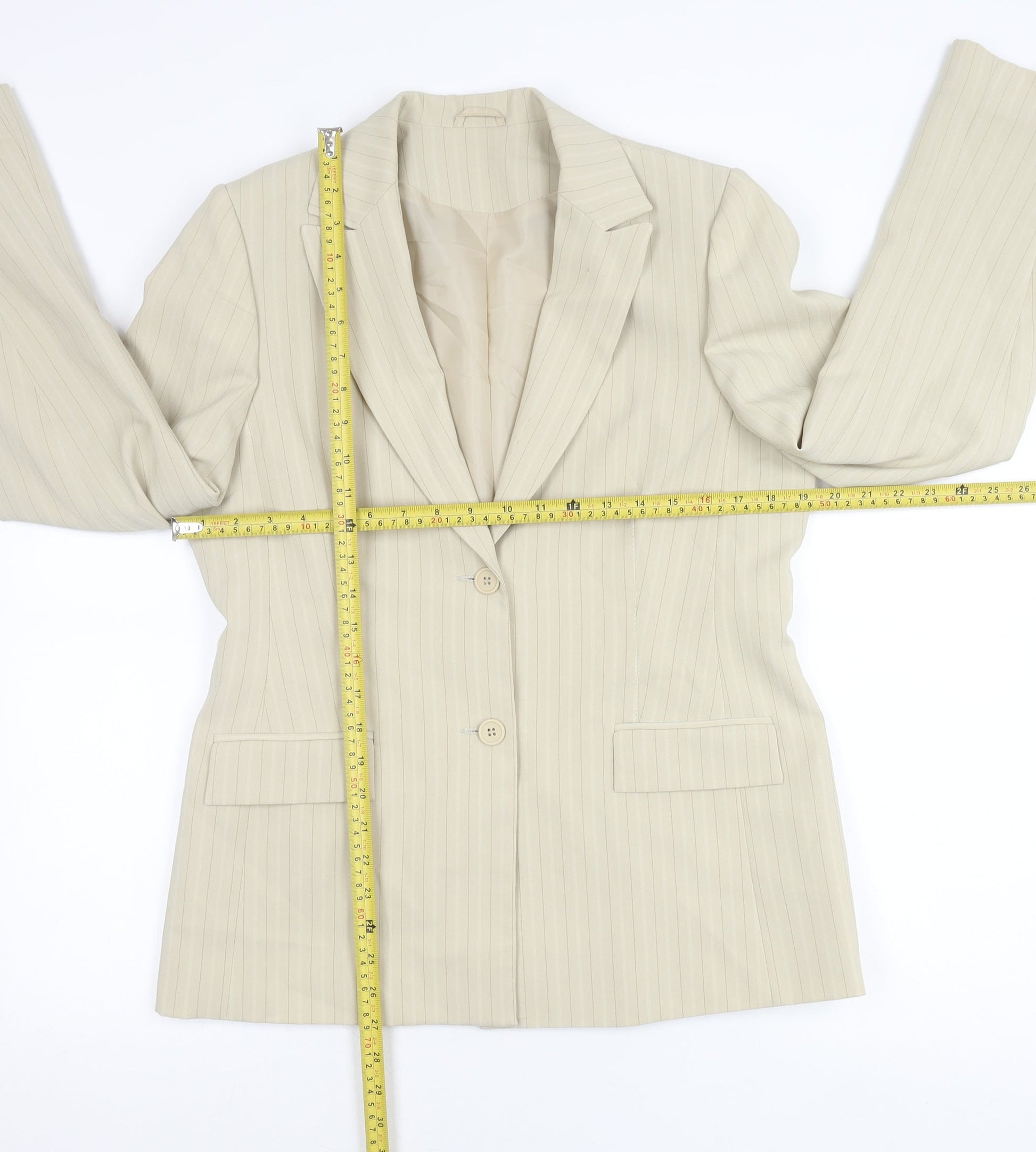 Dorothy Perkins Women’s Beige Pinstripe Blazer Size 14 Tailored Work Jacket