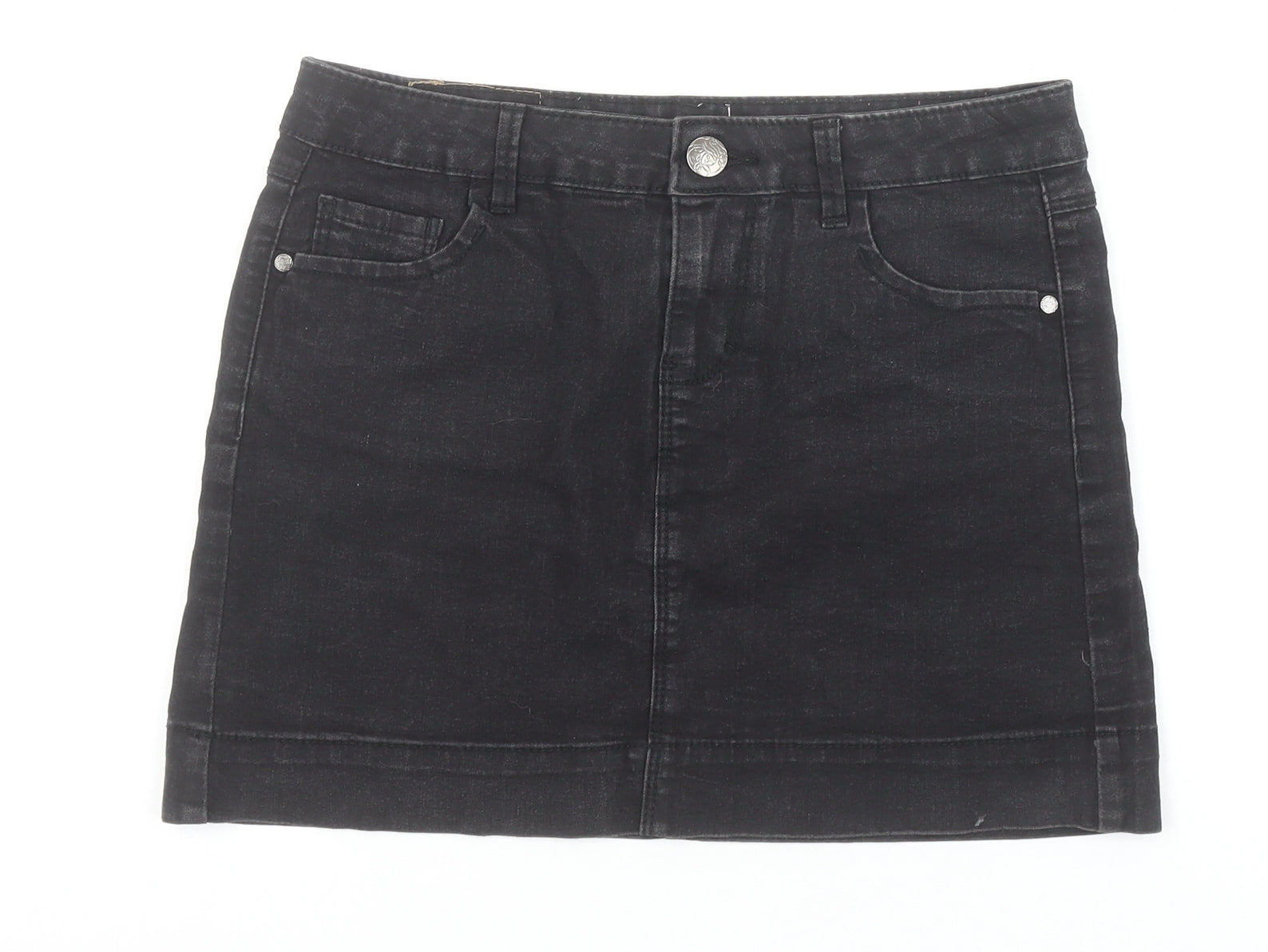 Dorothy Perkins Women’s Black Denim Mini Skirt Size 8 Stretch Casual