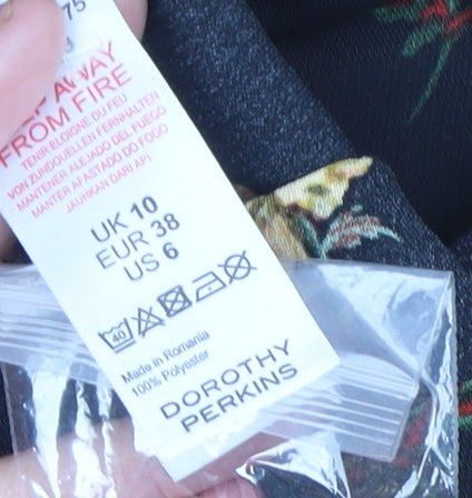 Dorothy Perkins Women’s Black Floral Shift Dress UK 10 Knee Length