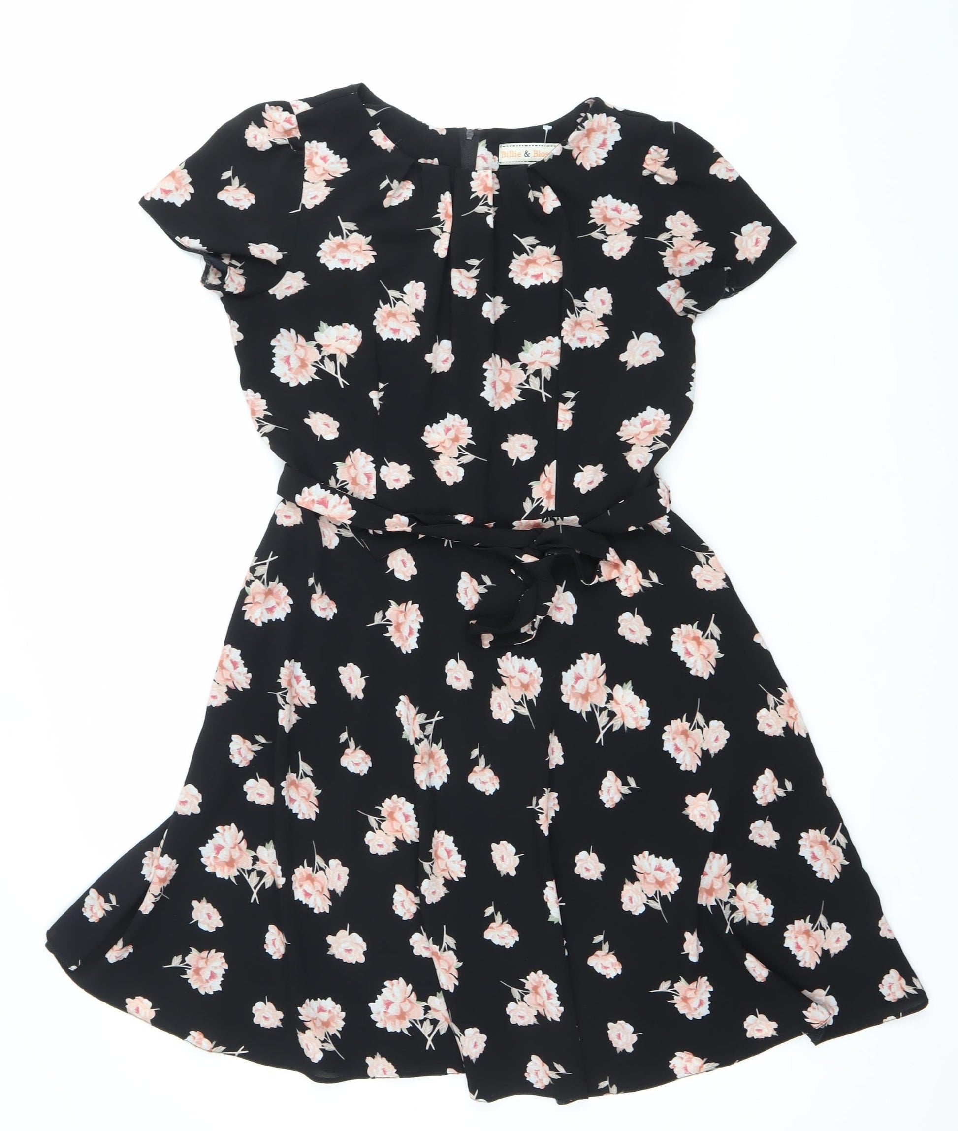 Dorothy Perkins Women’s Black Floral Wrap Dress Size 12 Knee Length