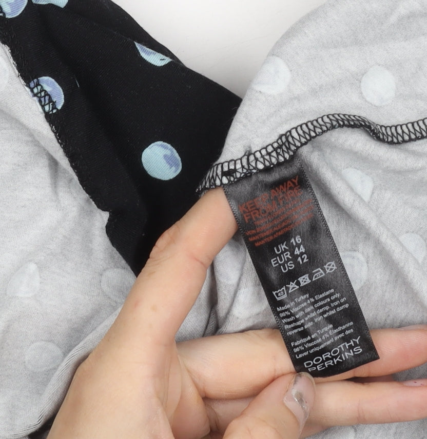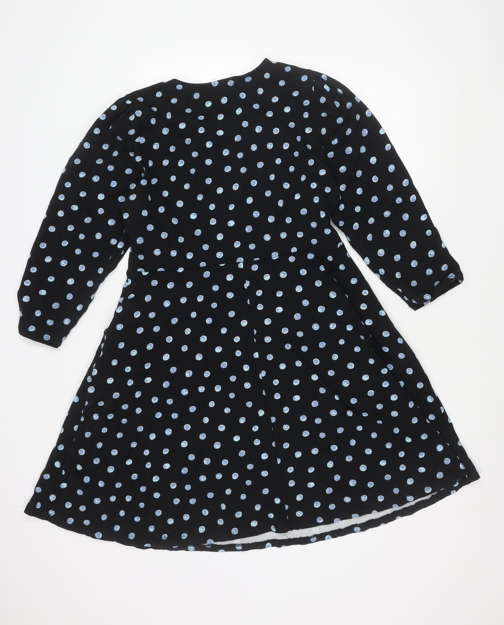 Dorothy Perkins Women’s Black Polka Dot A-Line Dress UK 16 Long Sleeve