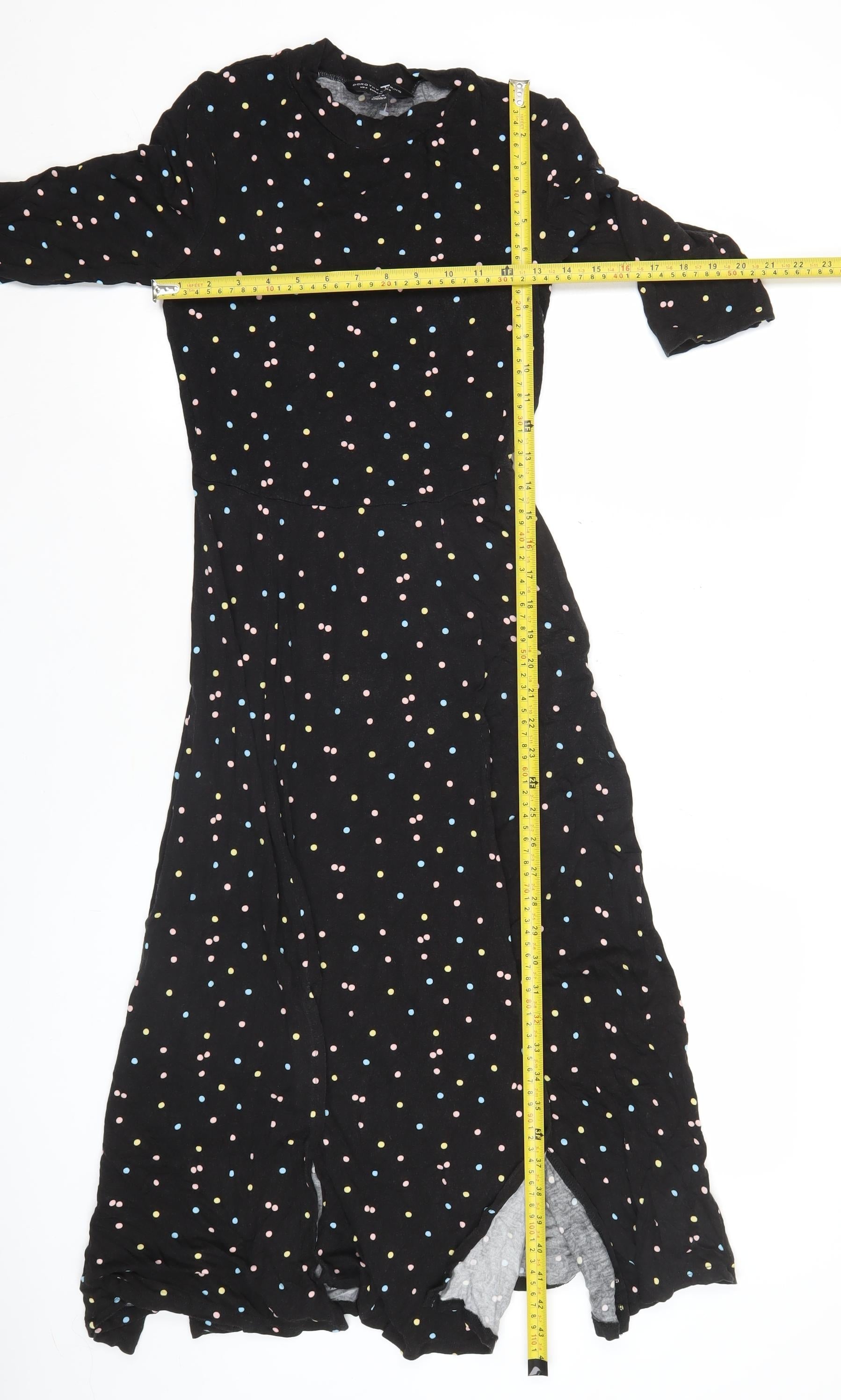 Dorothy Perkins Women’s Black Polka Dot Maxi Dress Size 8 Long Sleeve