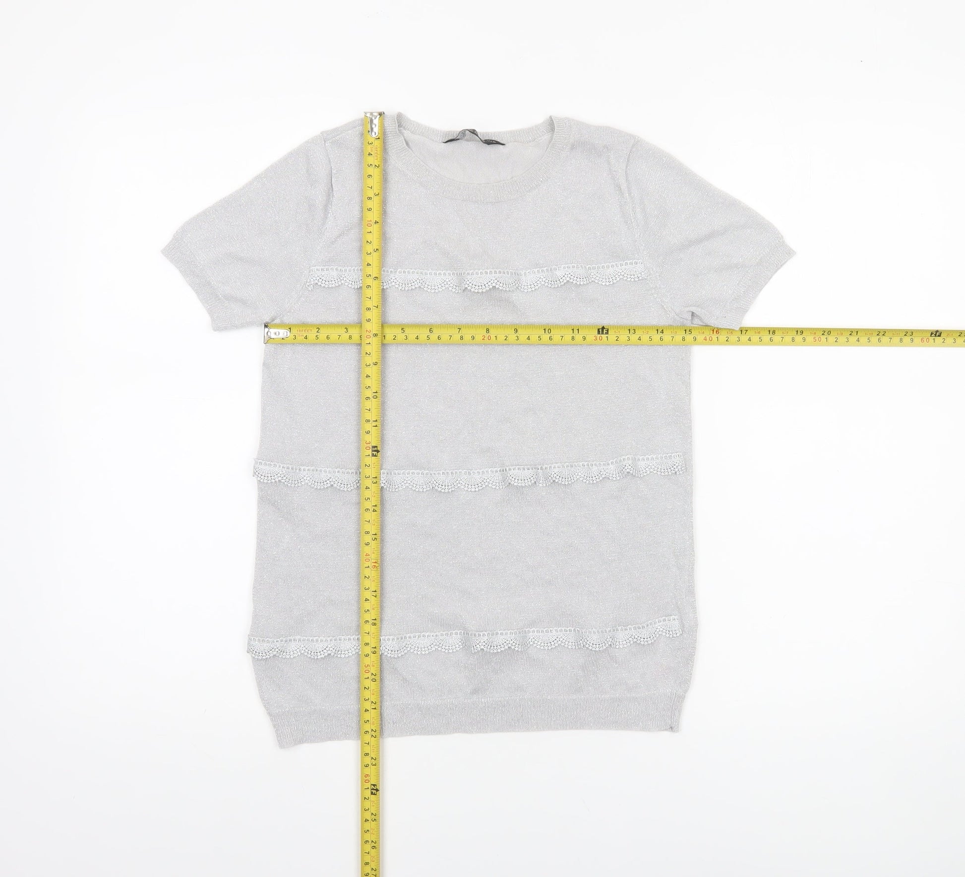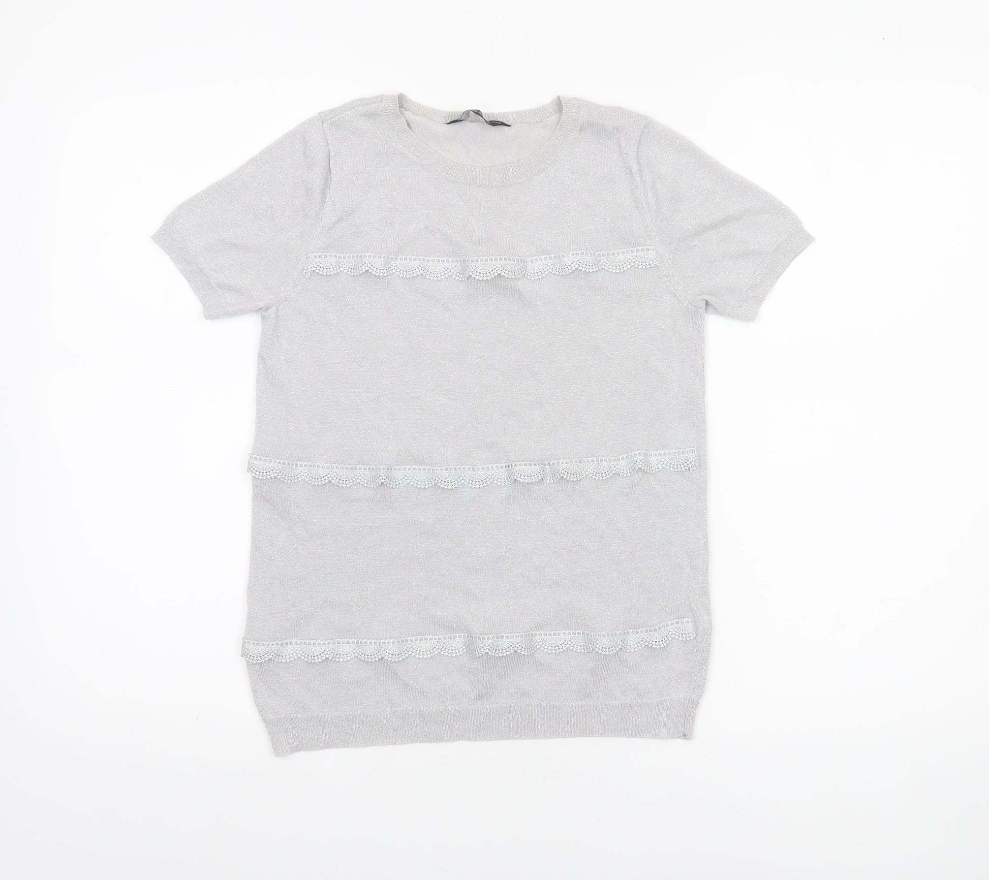 Dorothy Perkins Women’s Grey Lace Knit Short Sleeve Jumper UK 12