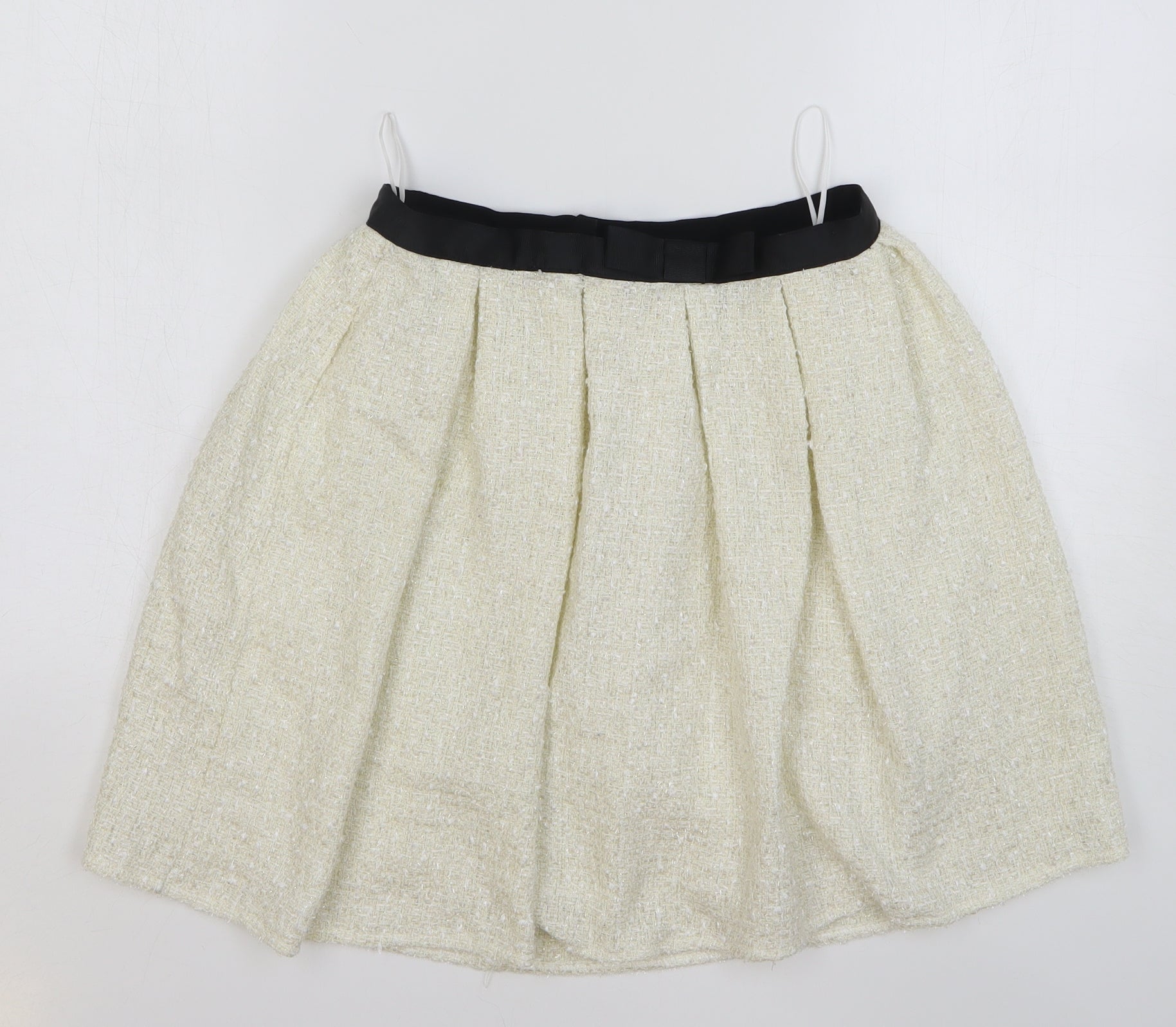 Dorothy Perkins Womens Beige Acrylic Pleated Skirt Size 8 Zip