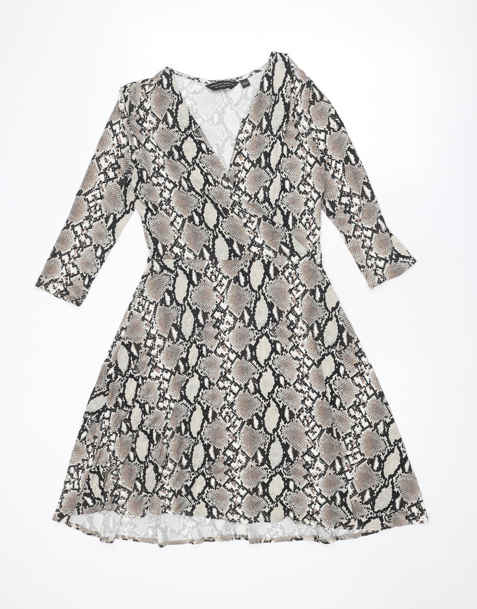 Dorothy Perkins Womens Beige Animal Print Viscose A-Line Size 10 V-Neck Pullover - Snakeskin Pattern