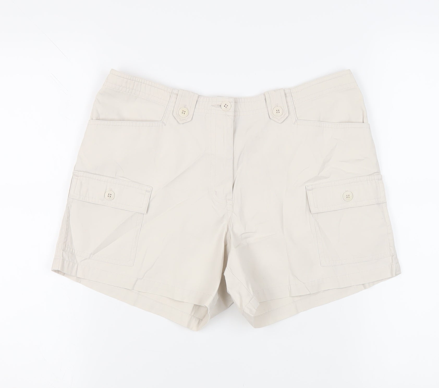 Dorothy Perkins Womens Beige Cotton Cargo Shorts Size 12 L4 in Regular Zip