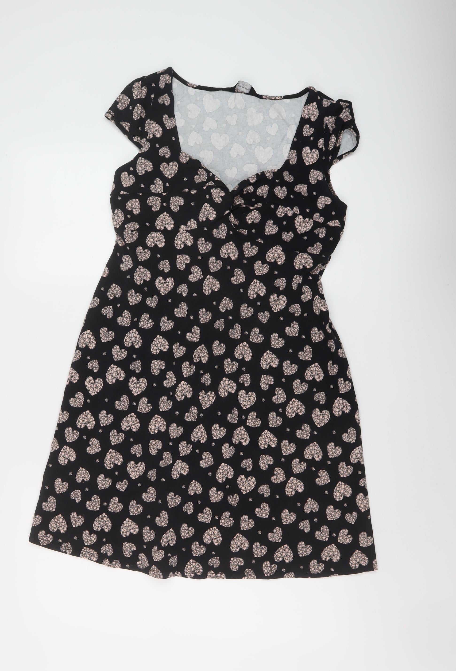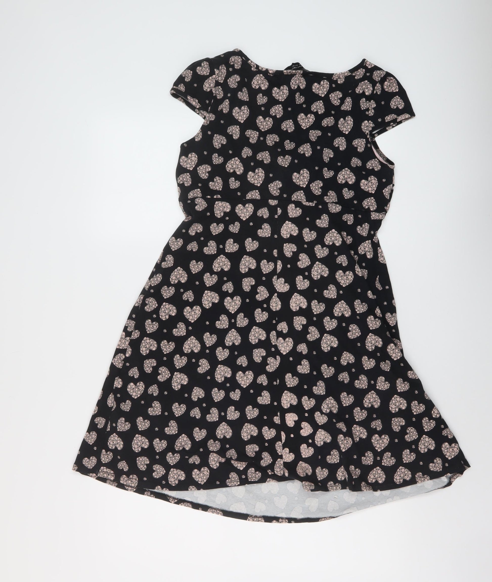 Dorothy Perkins Womens Beige Geometric Cotton A-Line Size 14 V-Neck Pullover