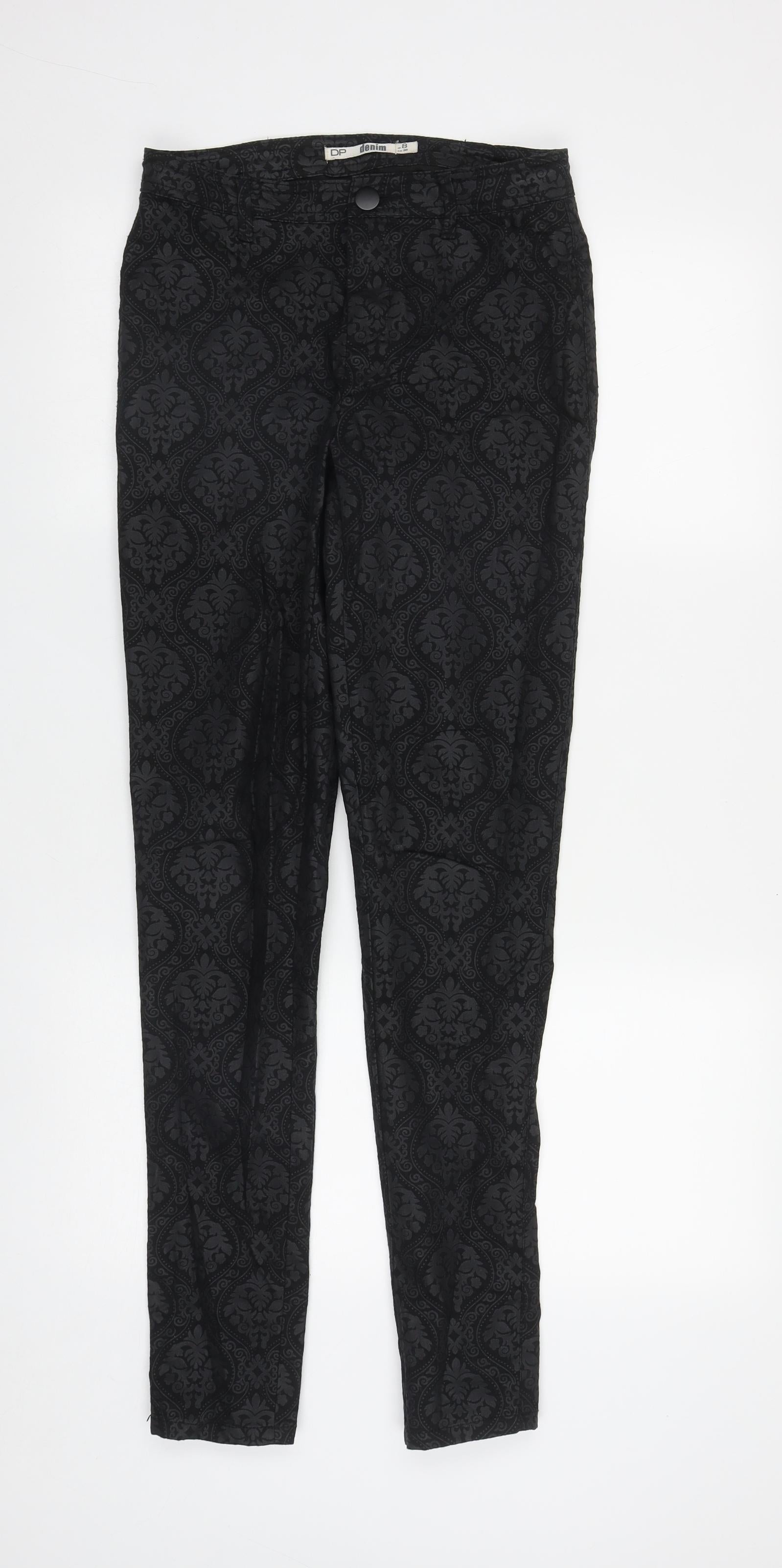 Dorothy Perkins Womens Beige Geometric Cotton Straight Jeans Size 8 L31 in Regular Zip