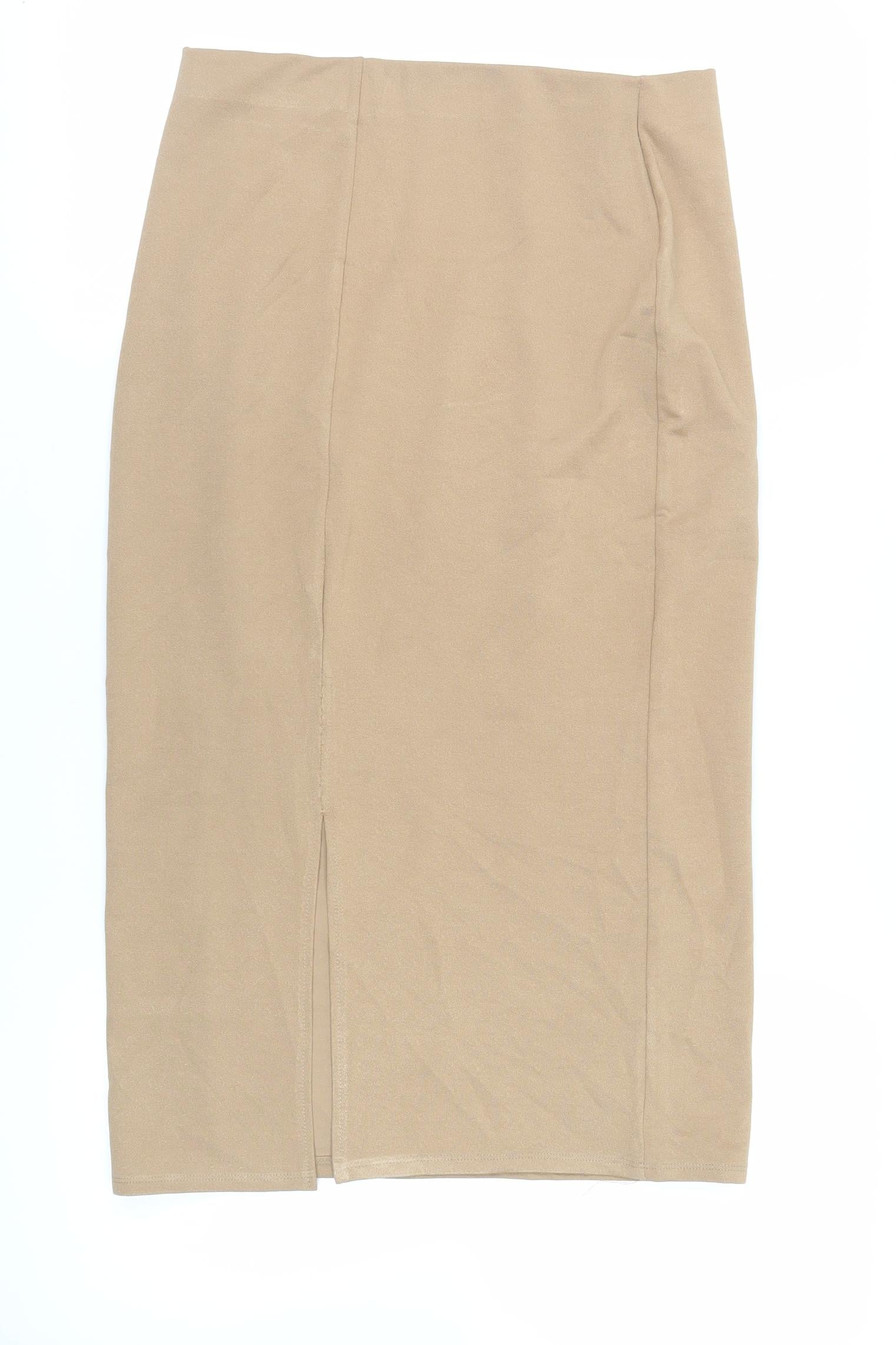 Dorothy Perkins Womens Beige Polyester Straight & Pencil Skirt Size 10 - Elasticated Waist
