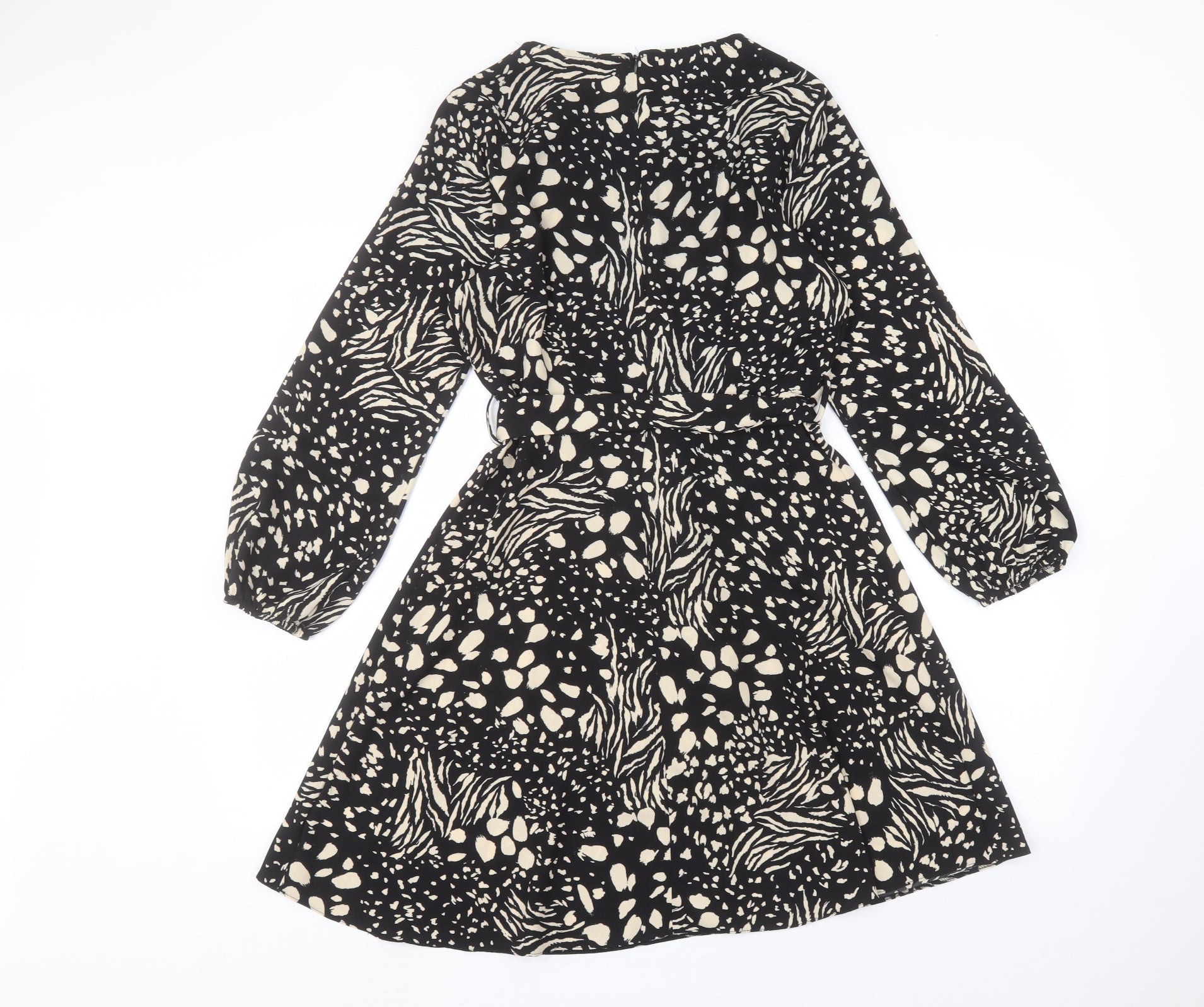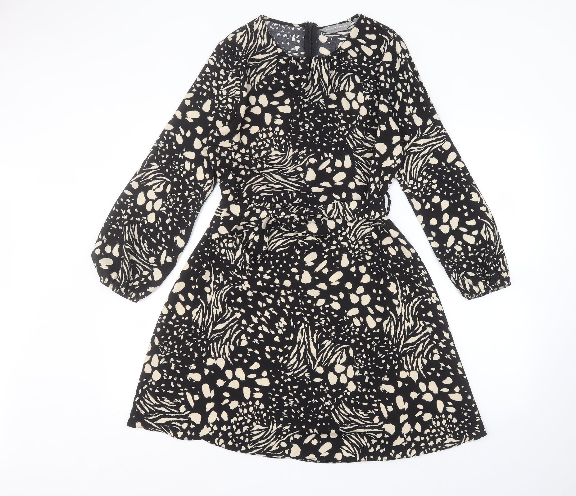 Dorothy Perkins Womens Black Animal Print A-Line Size 10