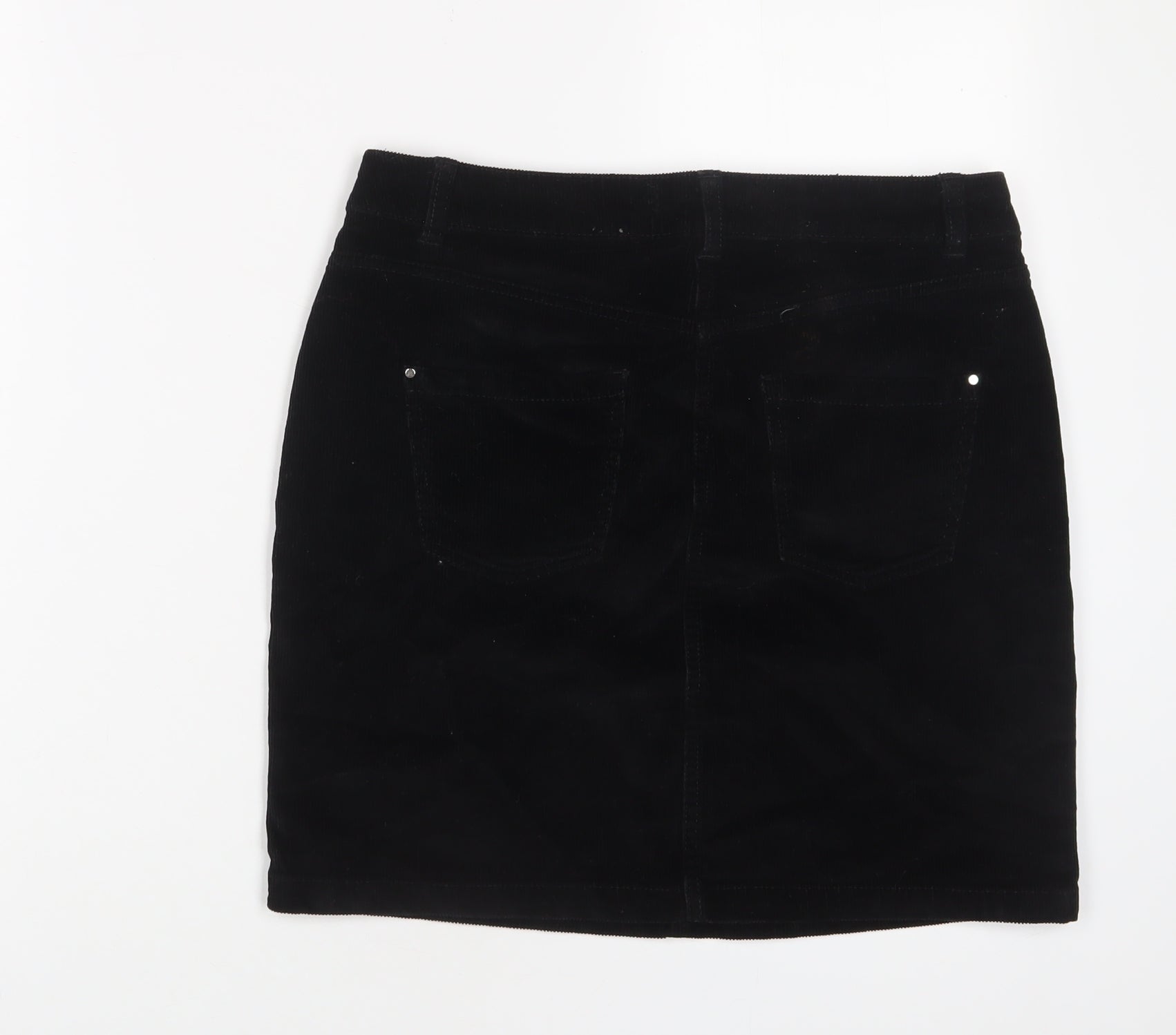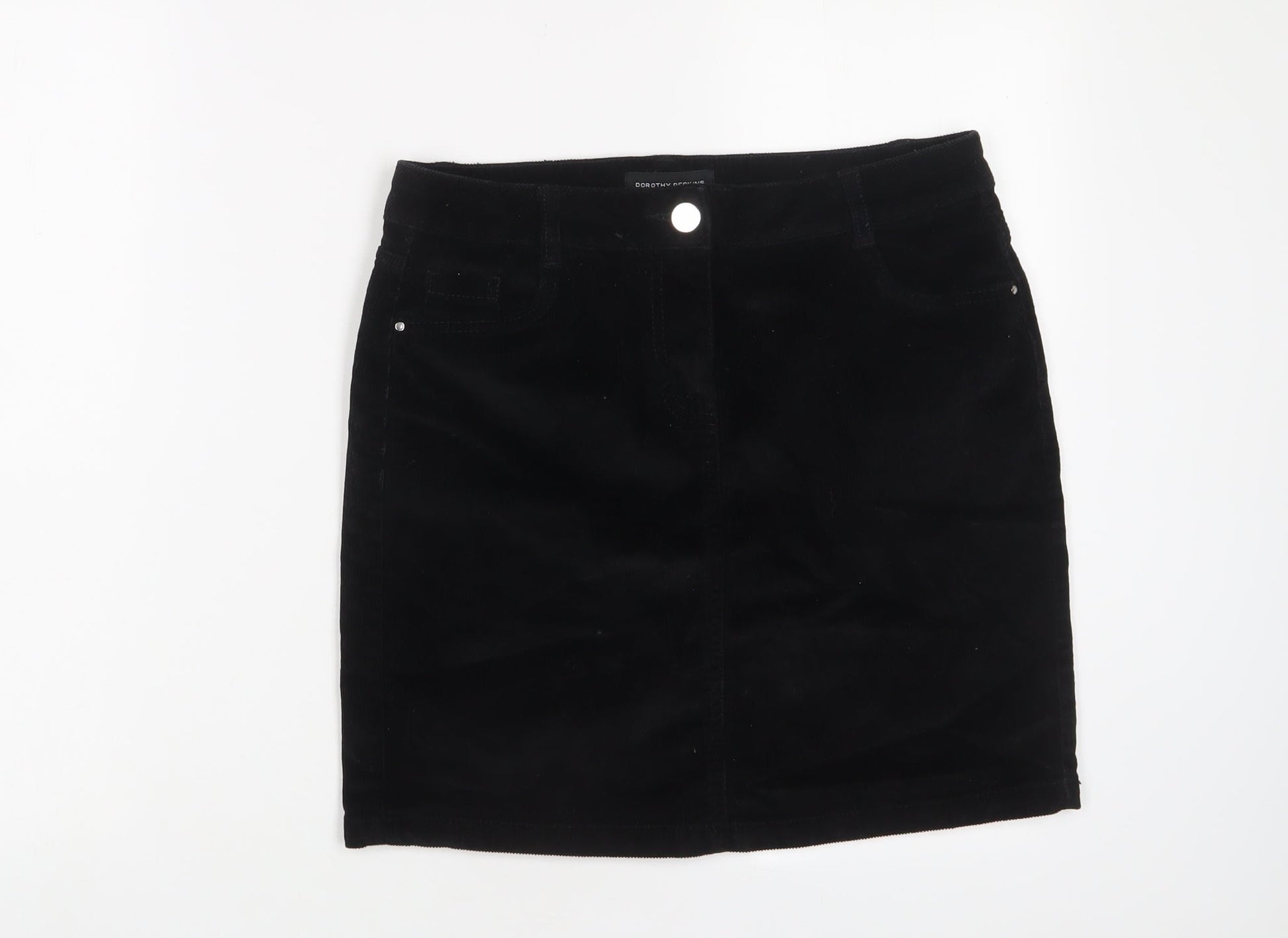 Dorothy Perkins Womens Black Cotton A-Line Skirt Size 8 Zip