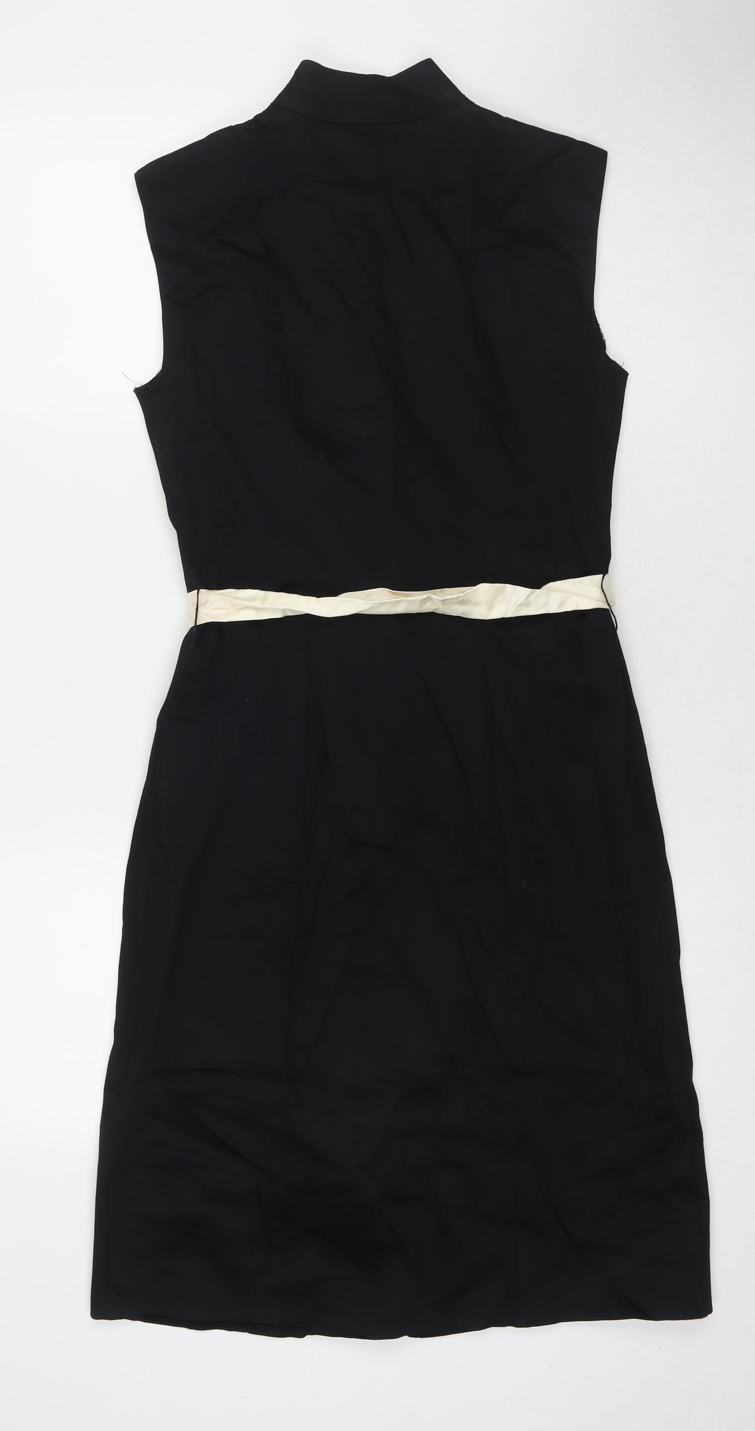 Dorothy Perkins Womens Black Cotton Pencil Dress Size 10 V-Neck Button