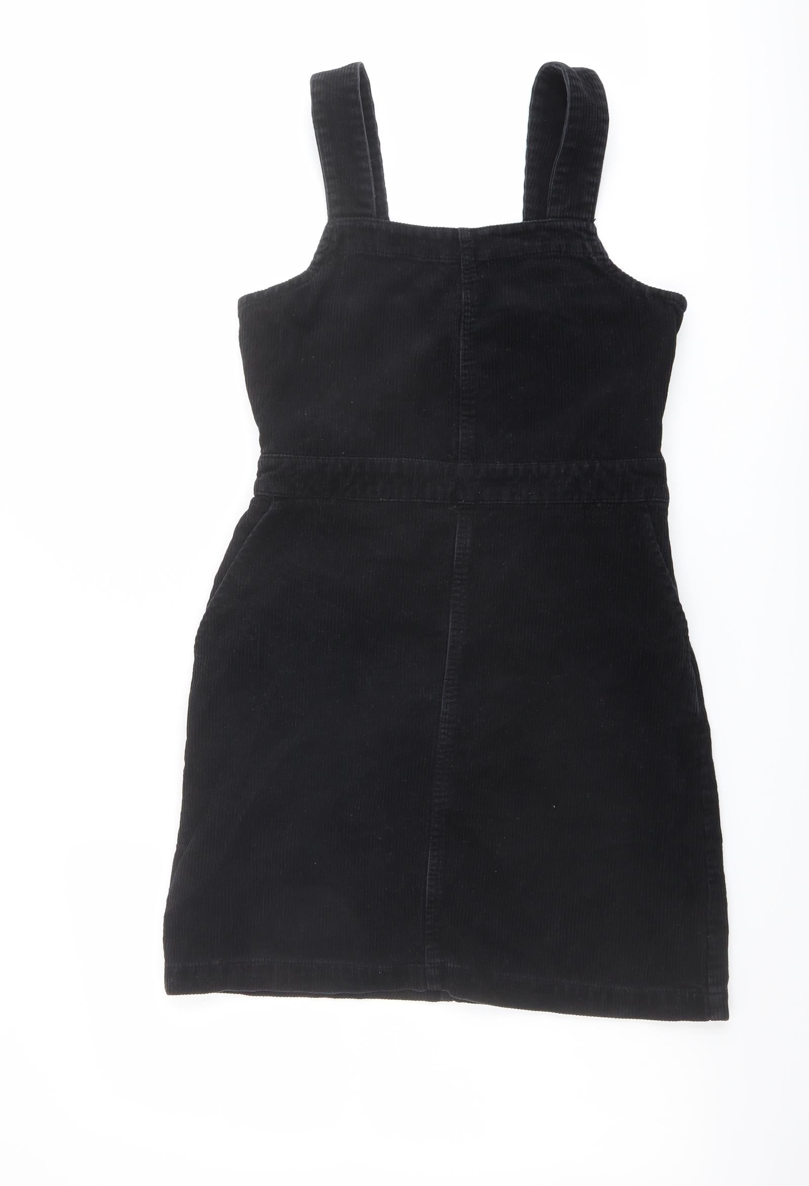 Dorothy Perkins Womens Black Cotton Pinafore/Dungaree Dress Size 8 Square Neck Zip