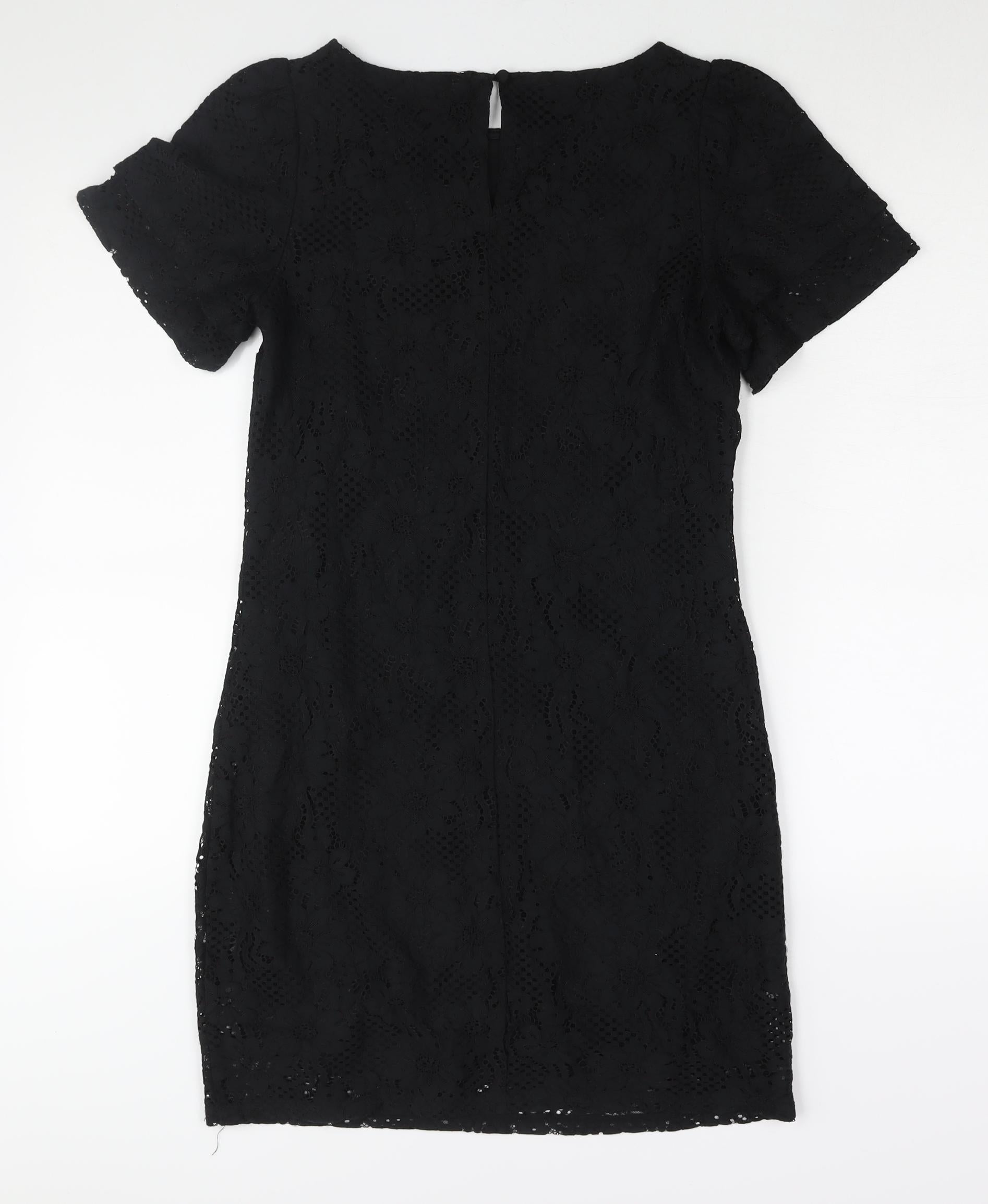 Dorothy Perkins Womens Black Cotton Shift Size 8 Round Neck Button