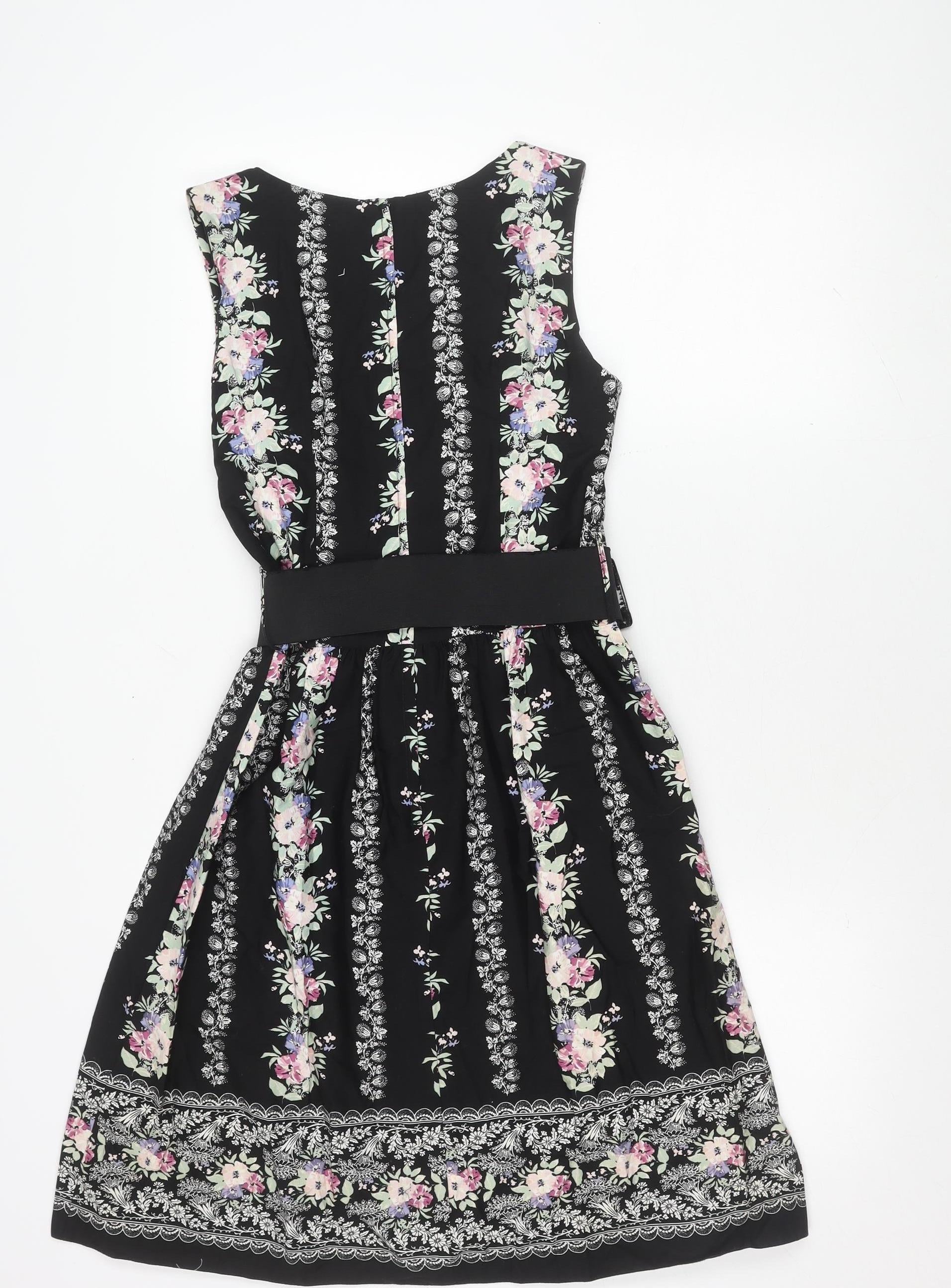 Dorothy Perkins Women's Black Floral A-Line Dress Size 8