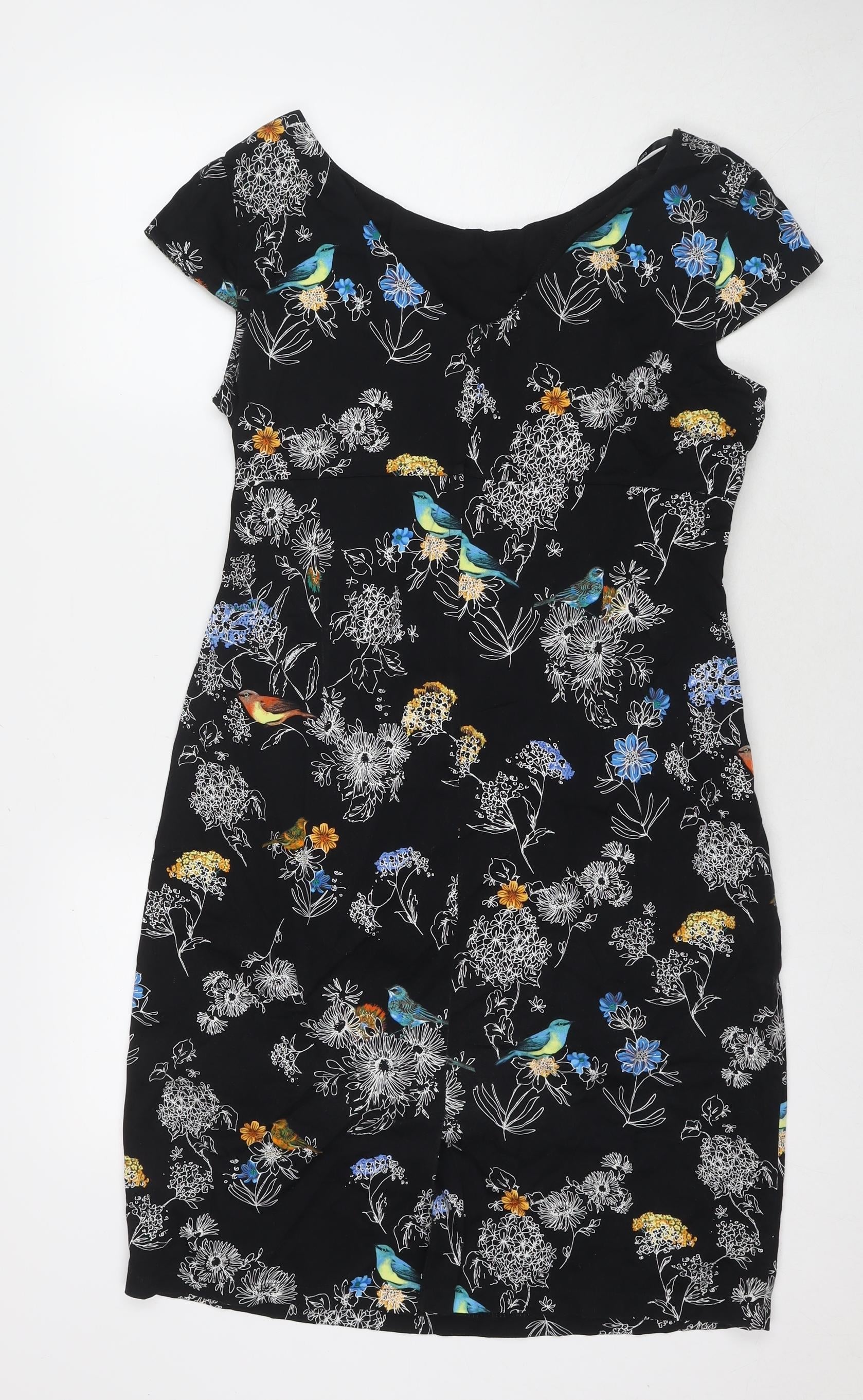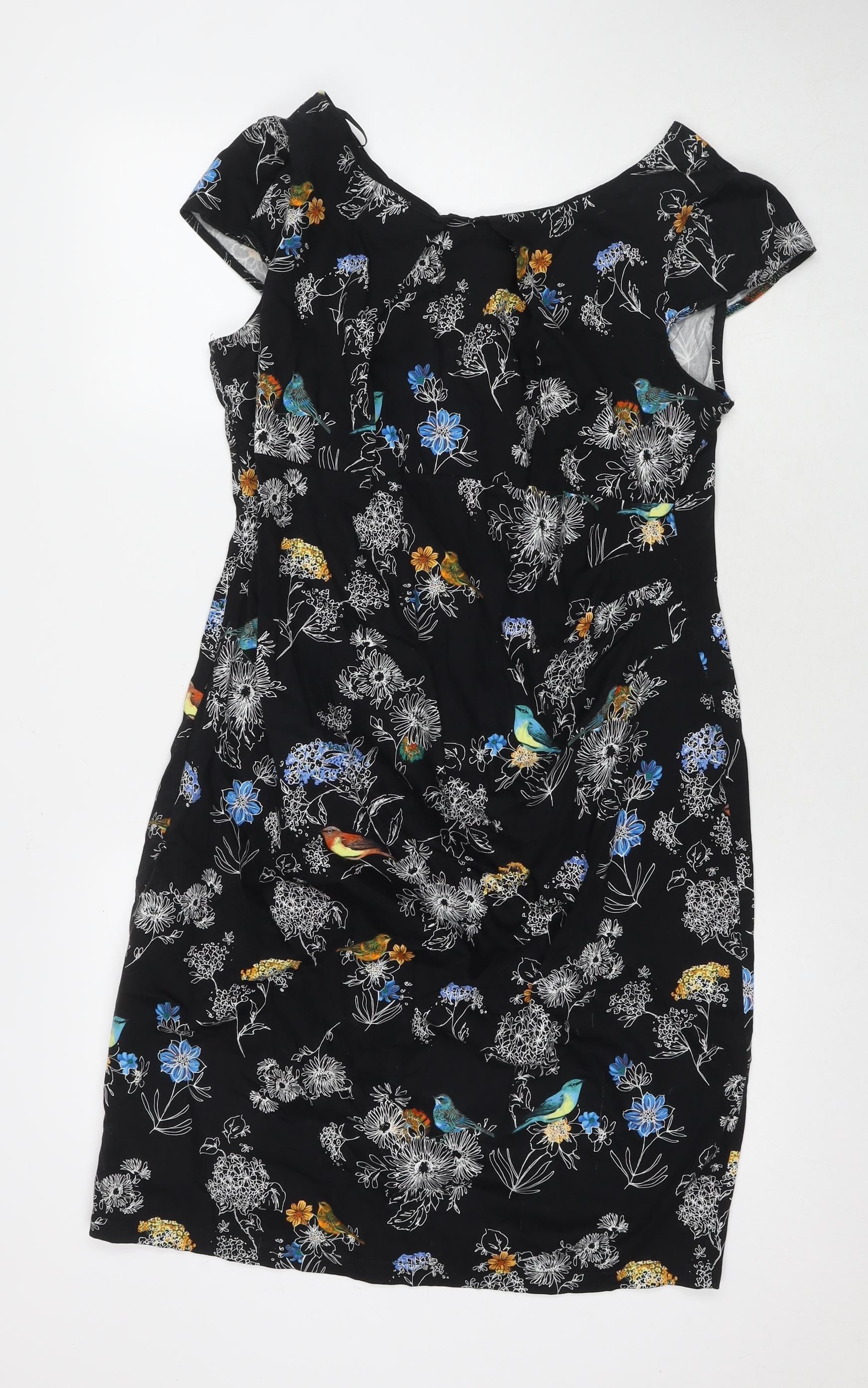 Dorothy Perkins Womens Black Floral Cotton A-Line Size 18 V-Neck Zip