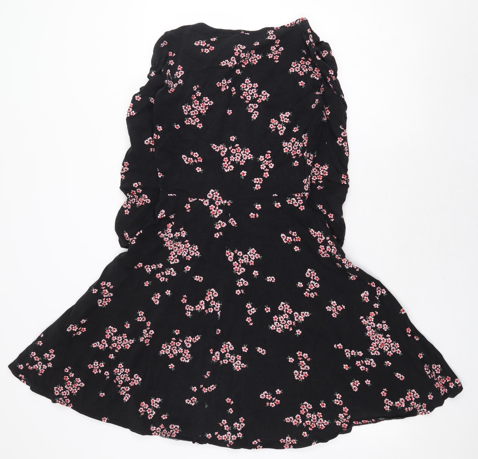 Dorothy Perkins Womens Black Floral Cotton Fit & Flare Size 8 Boat Neck Pullover