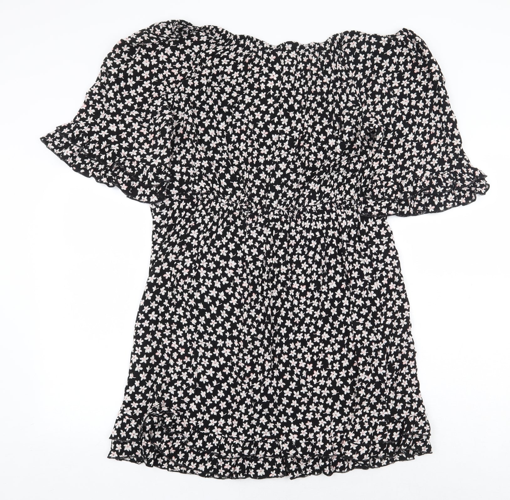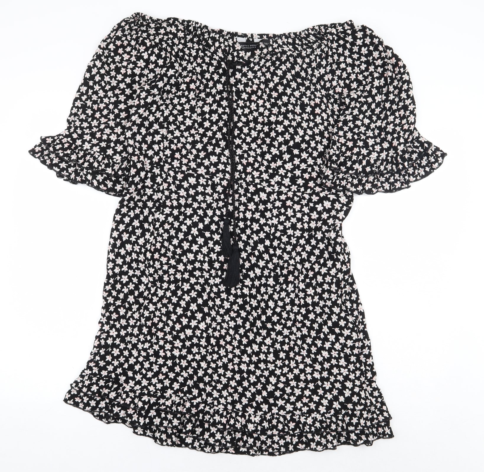 Dorothy Perkins Womens Black Floral Viscose A-Line Size 12 Off the Shoulder Pullover