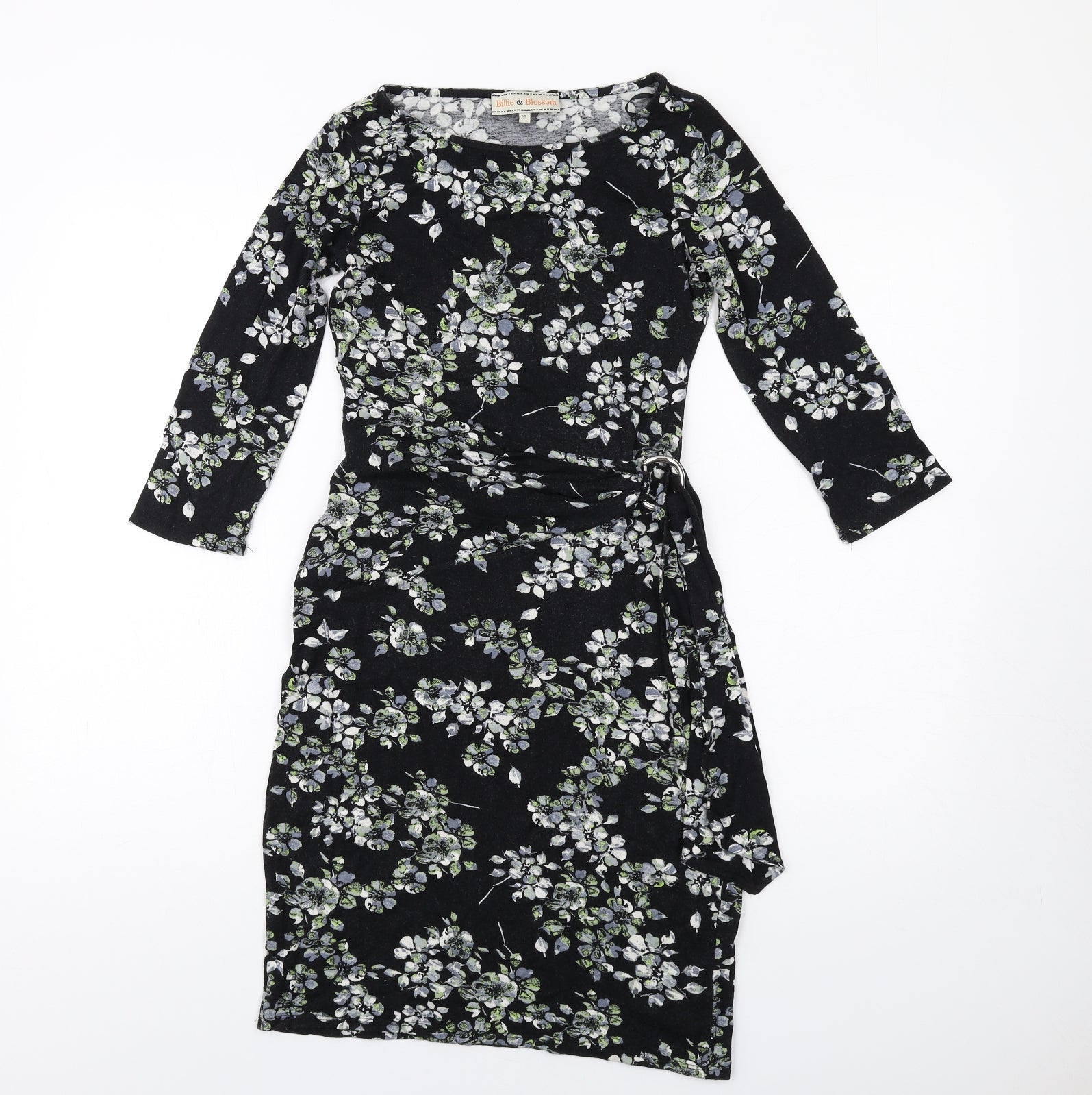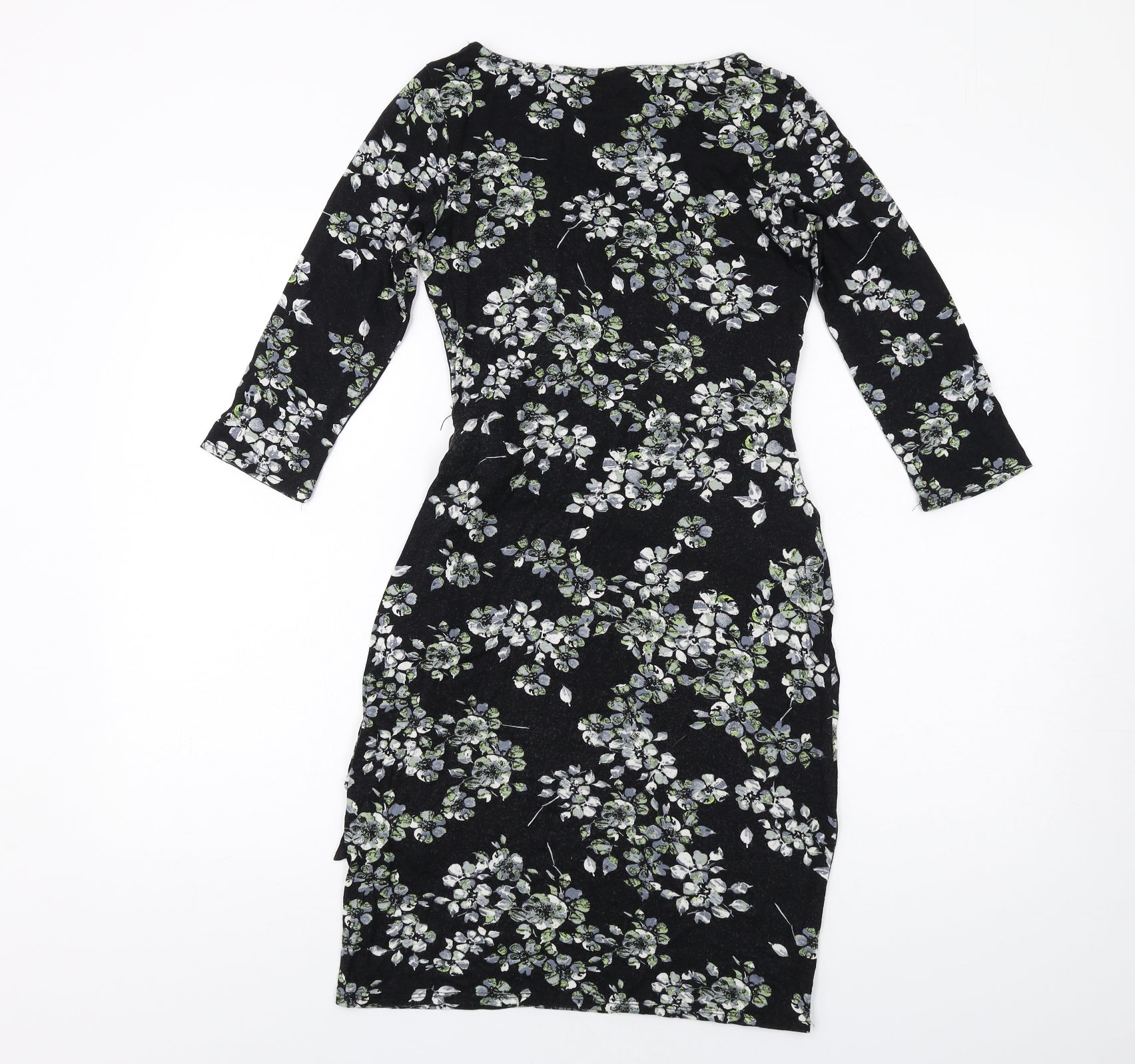 Dorothy Perkins Womens Black Floral Viscose Bodycon Size 10 Round Neck Pullover