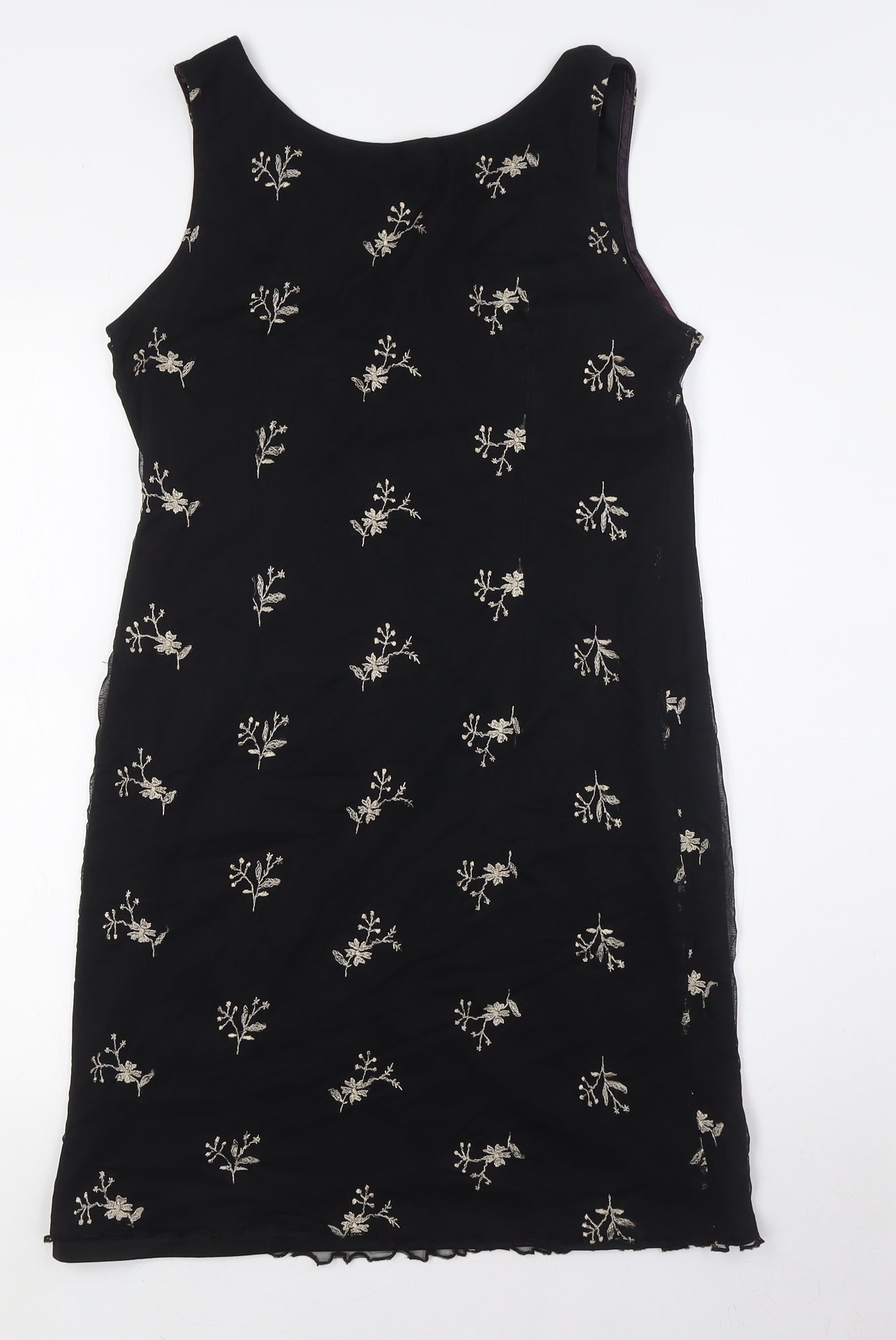 Dorothy Perkins Womens Black Floral Viscose Pencil Dress Size 14 Round Neck