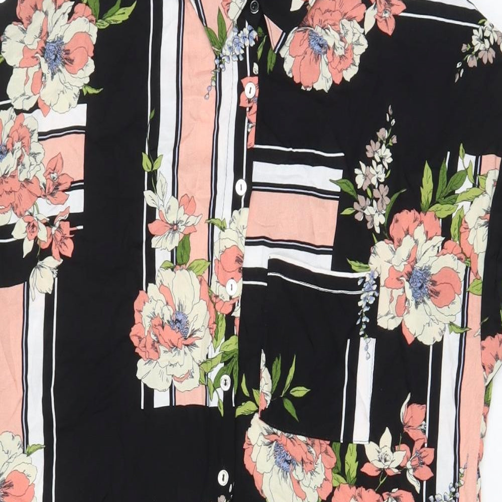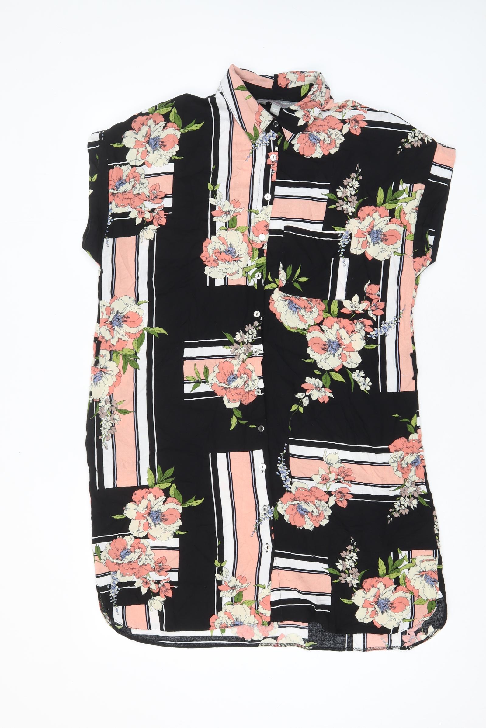 Dorothy Perkins Womens Black Floral Viscose Shirt Dress Size 12 Collared Button