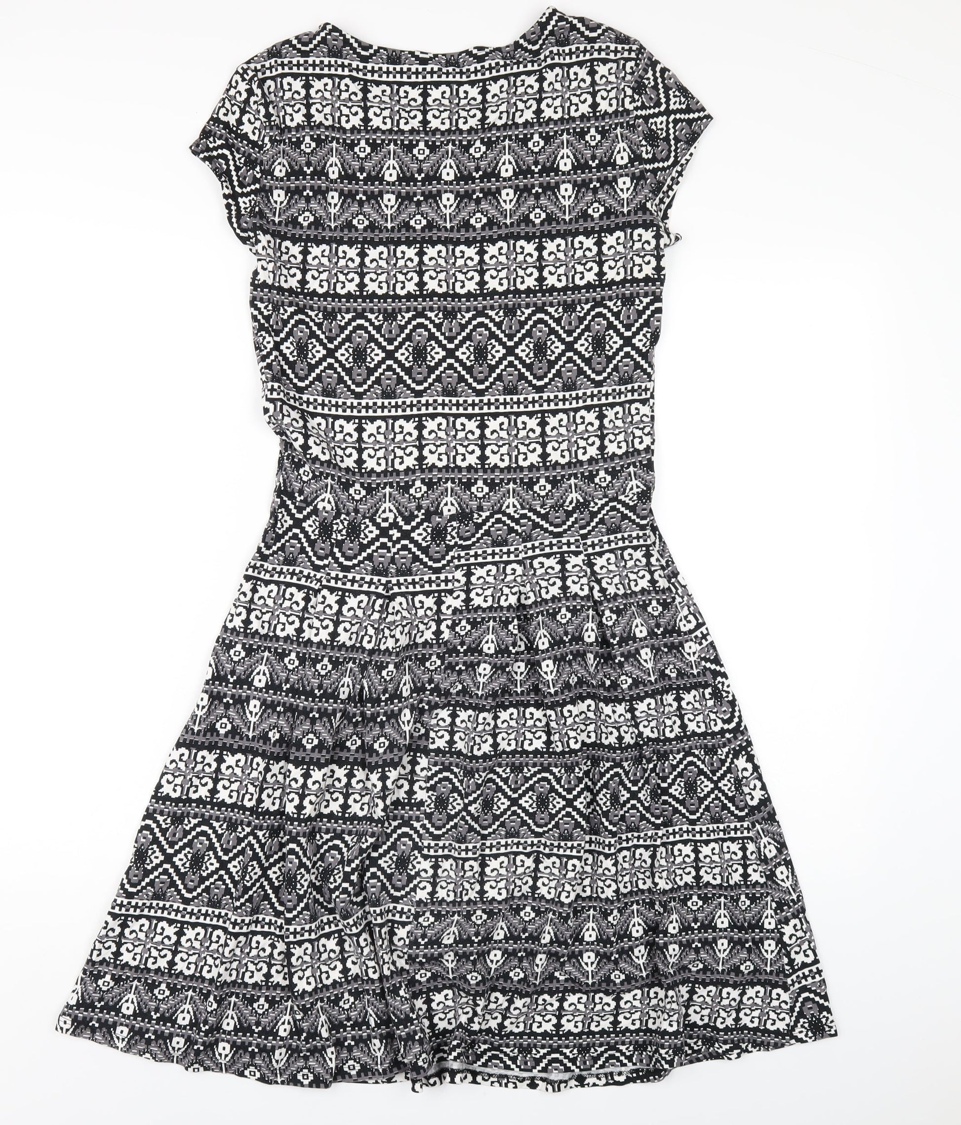Dorothy Perkins Womens Black Geometric Cotton A-Line Size 10 Round Neck Pullover