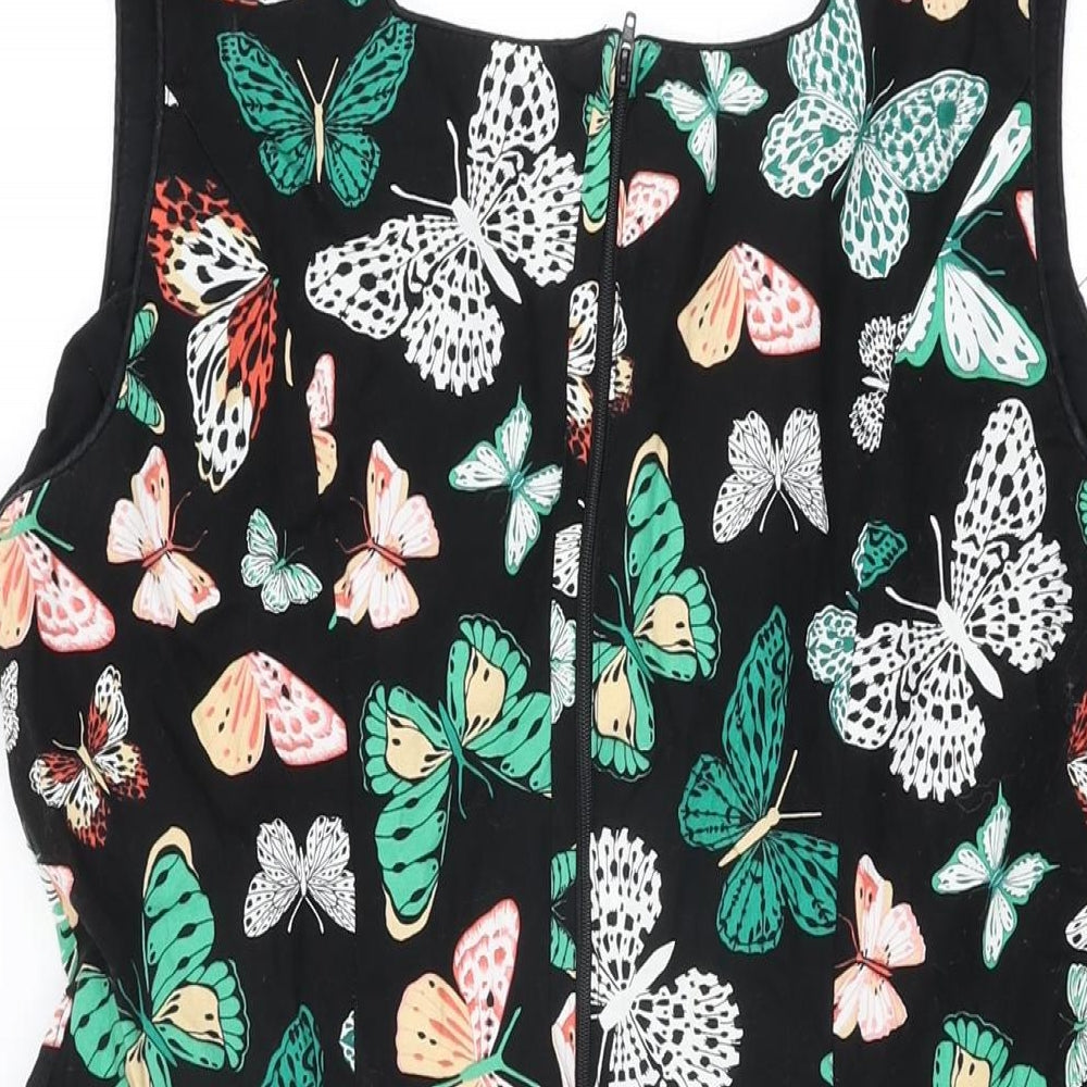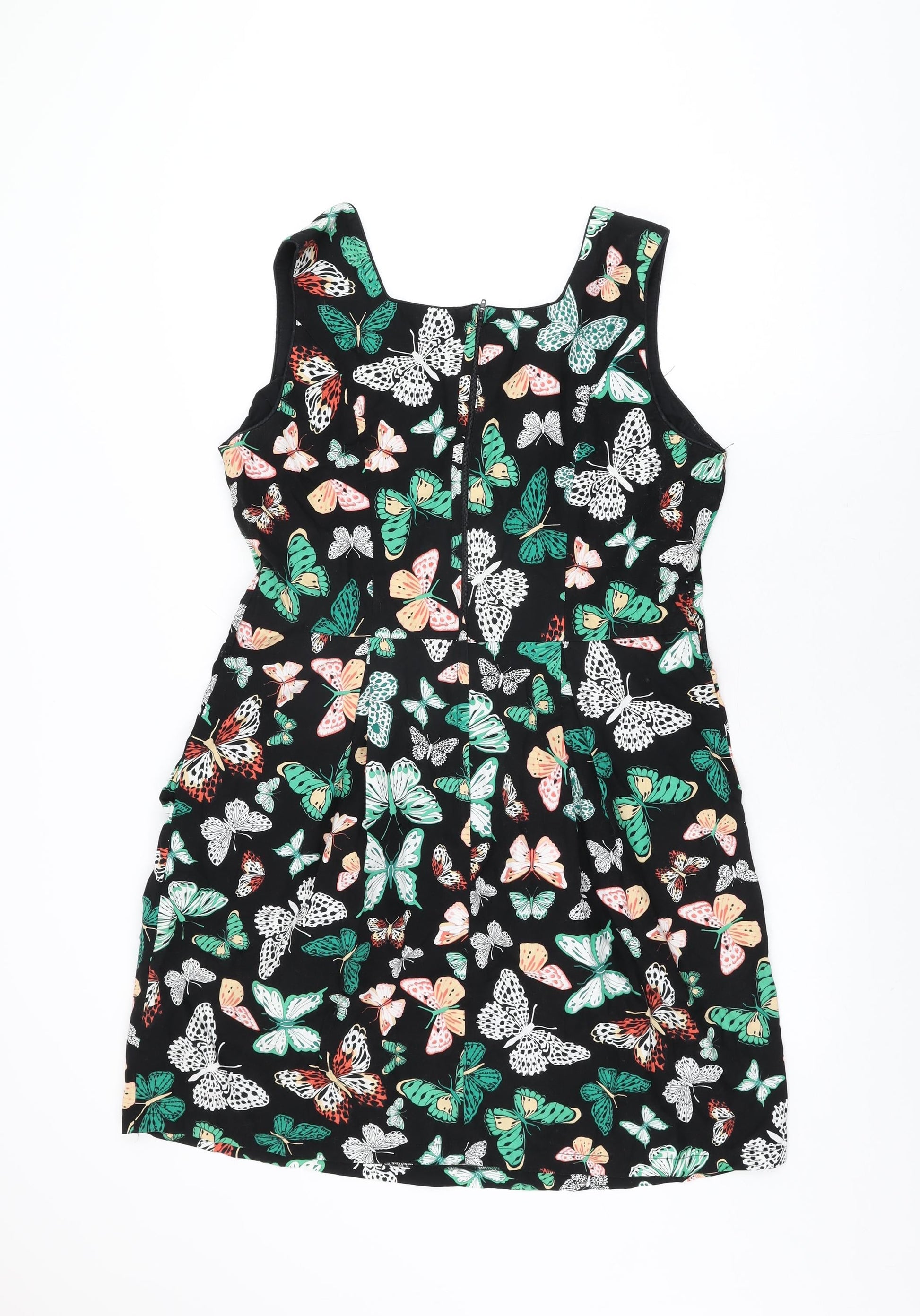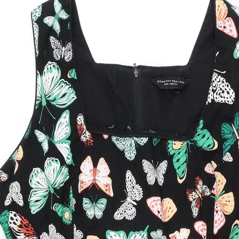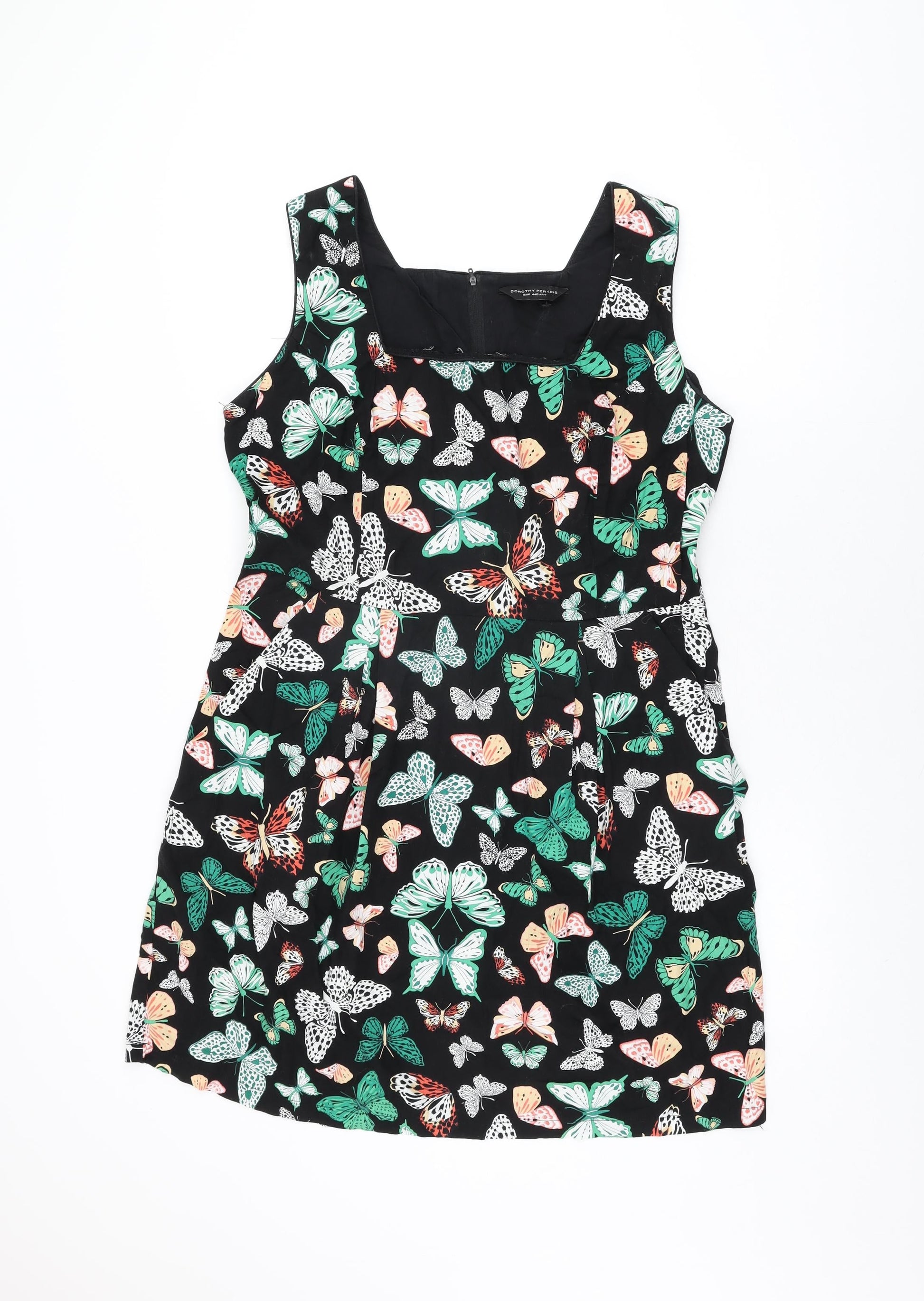 Dorothy Perkins Womens Black Geometric Cotton Shift Size 16 Square Neck Zip